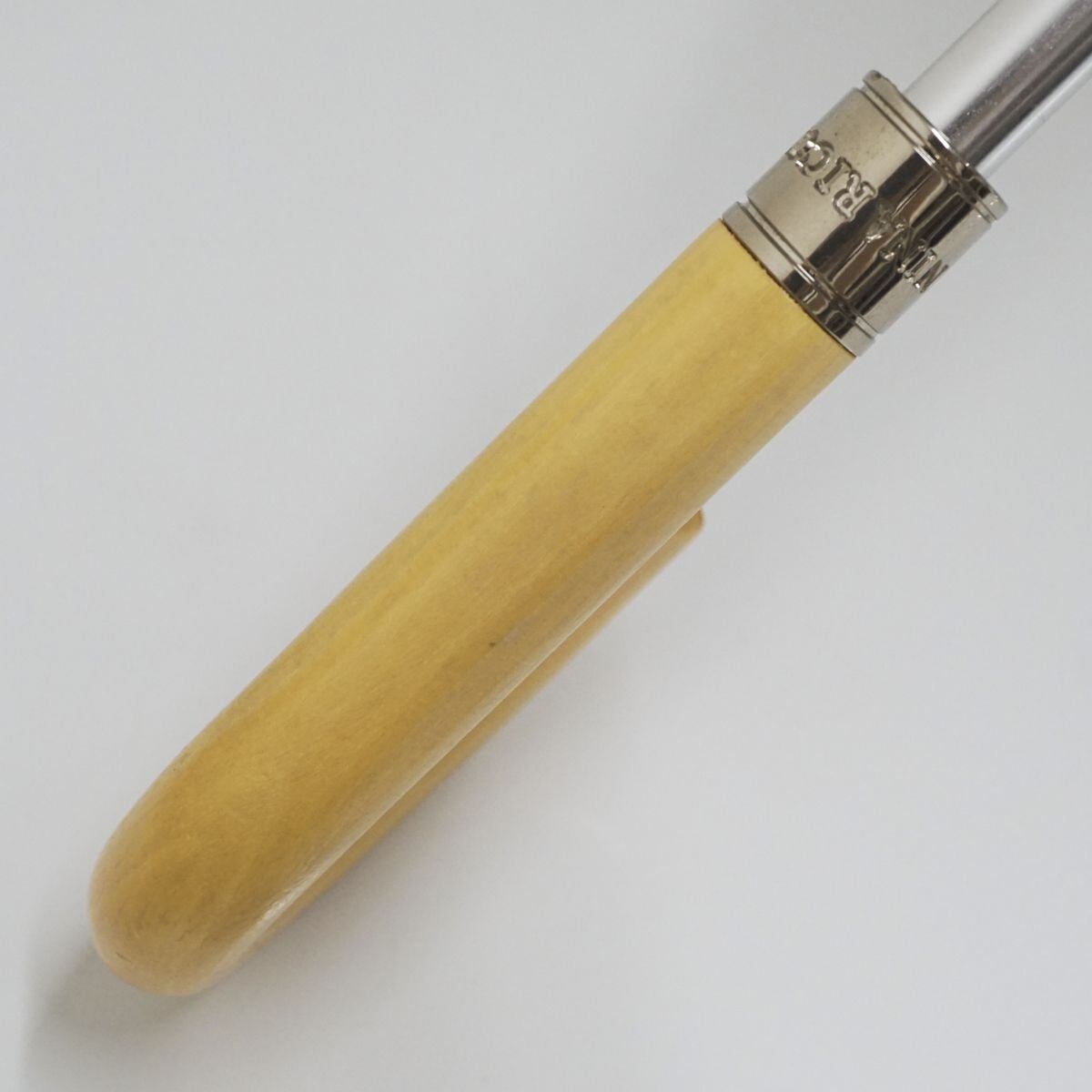 木製のハンドルとホワイトのロゴ刺繍が上品な仕上がりです。