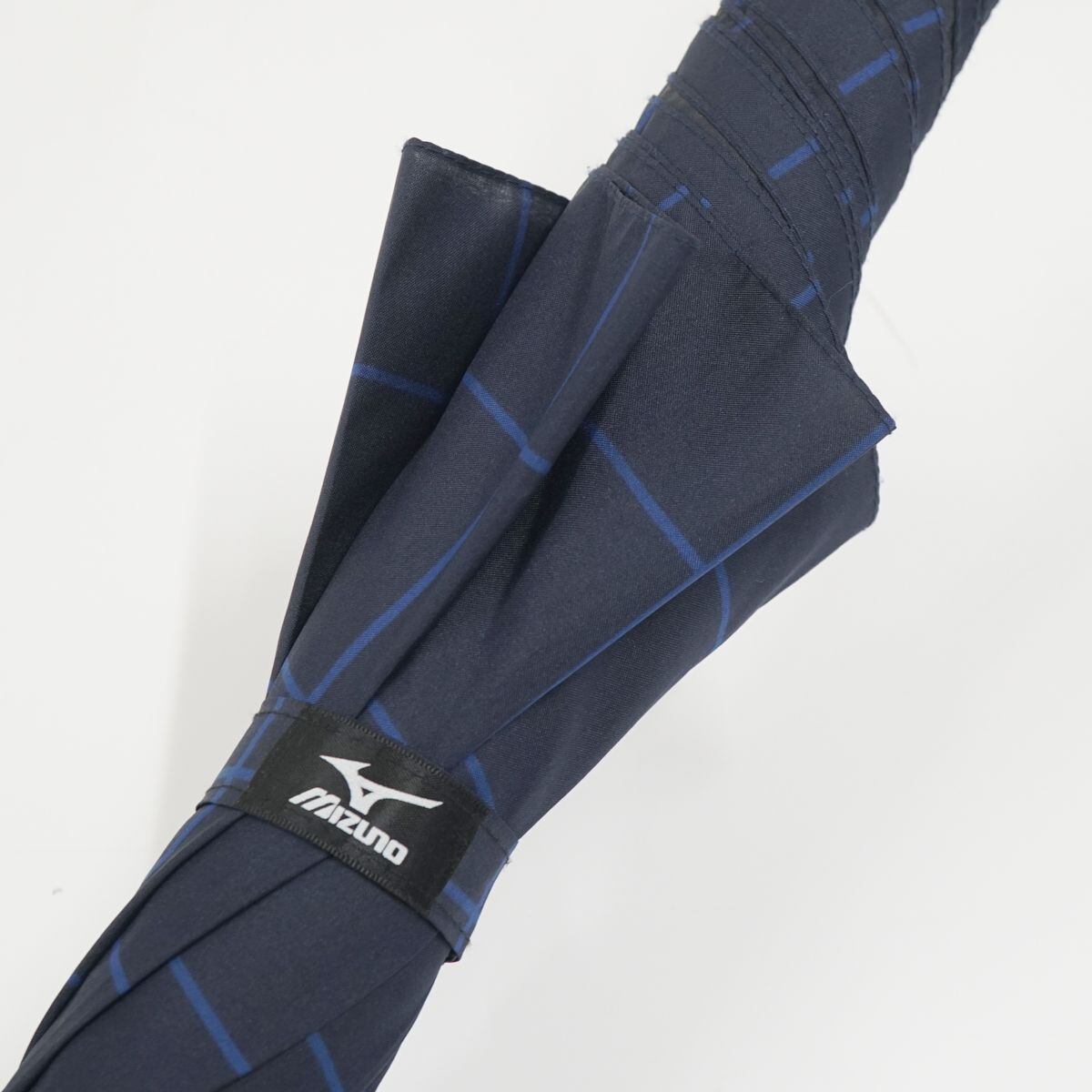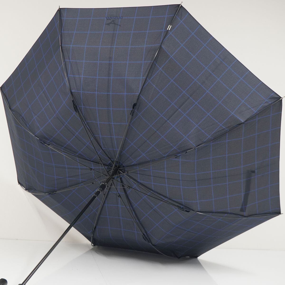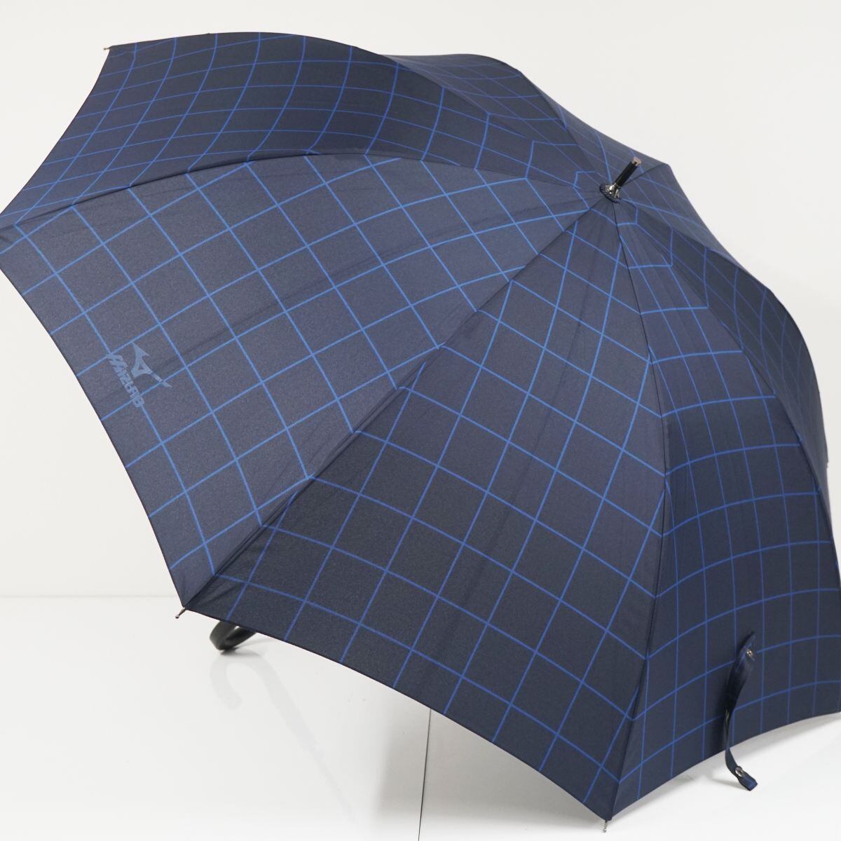 傘 MIZUNO ミズノ USED美品 格子柄 ネイビー 耐風 紳士傘 グラスファイバーフレーム ジャンプ 超大判 70cm A1189