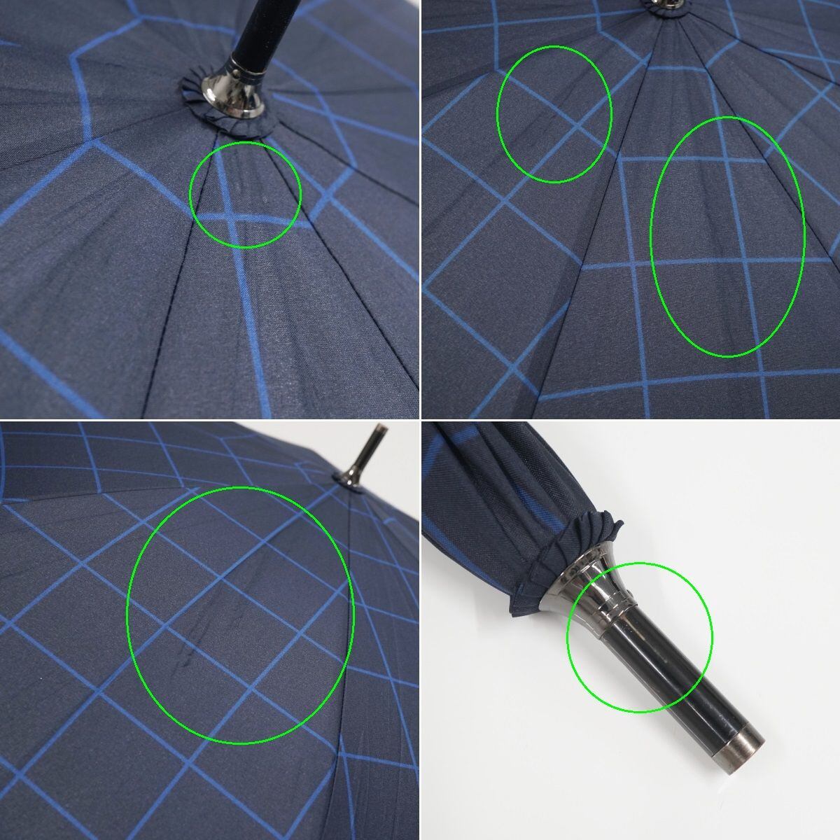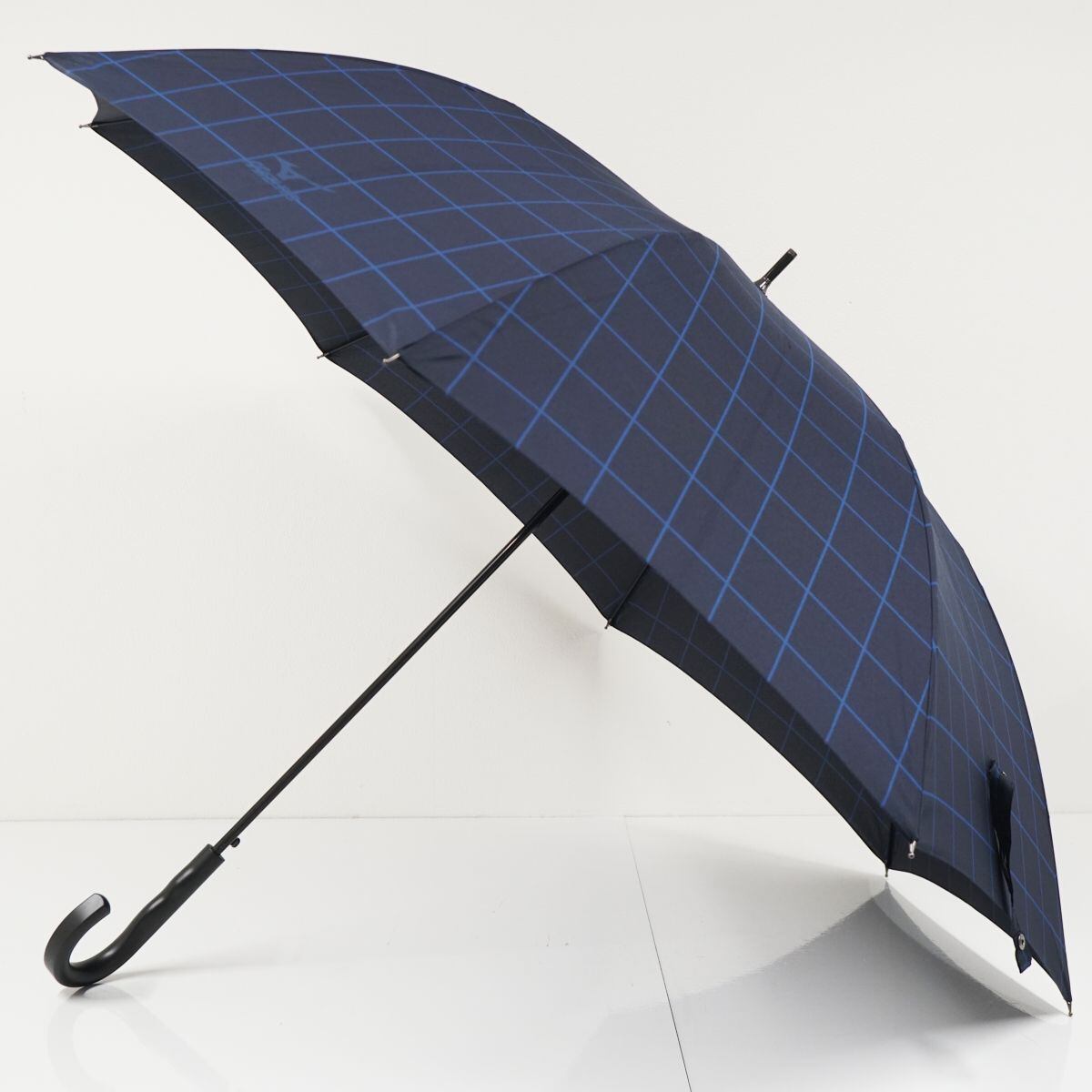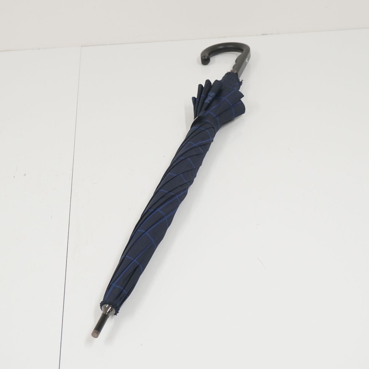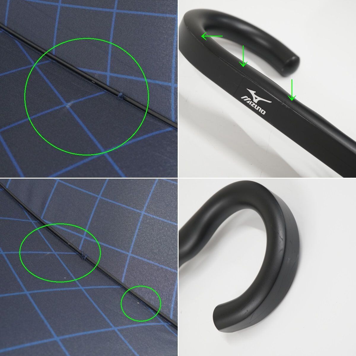傘 MIZUNO ミズノ USED美品 格子柄 ネイビー 耐風 紳士傘 グラスファイバーフレーム ジャンプ 超大判 70cm A1189