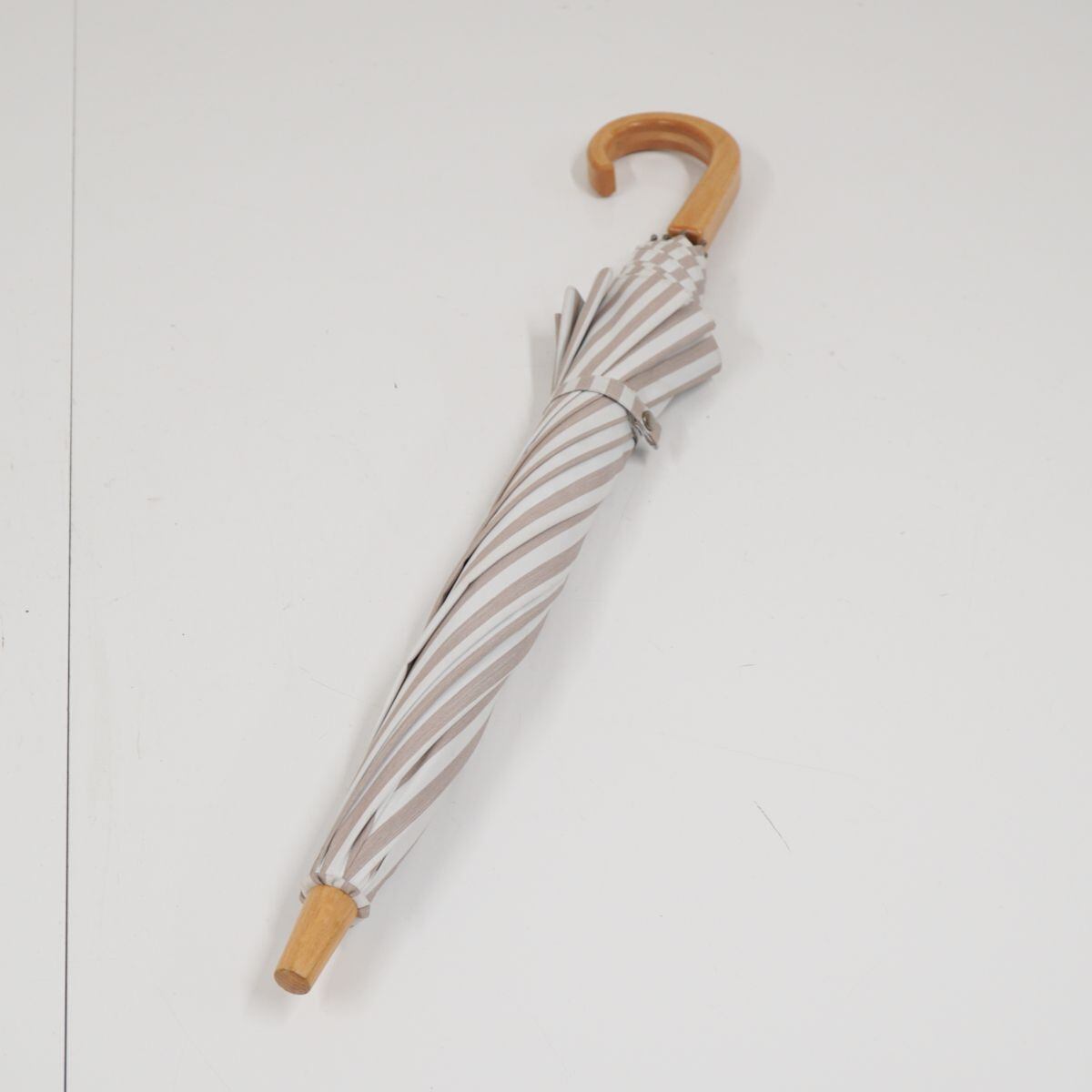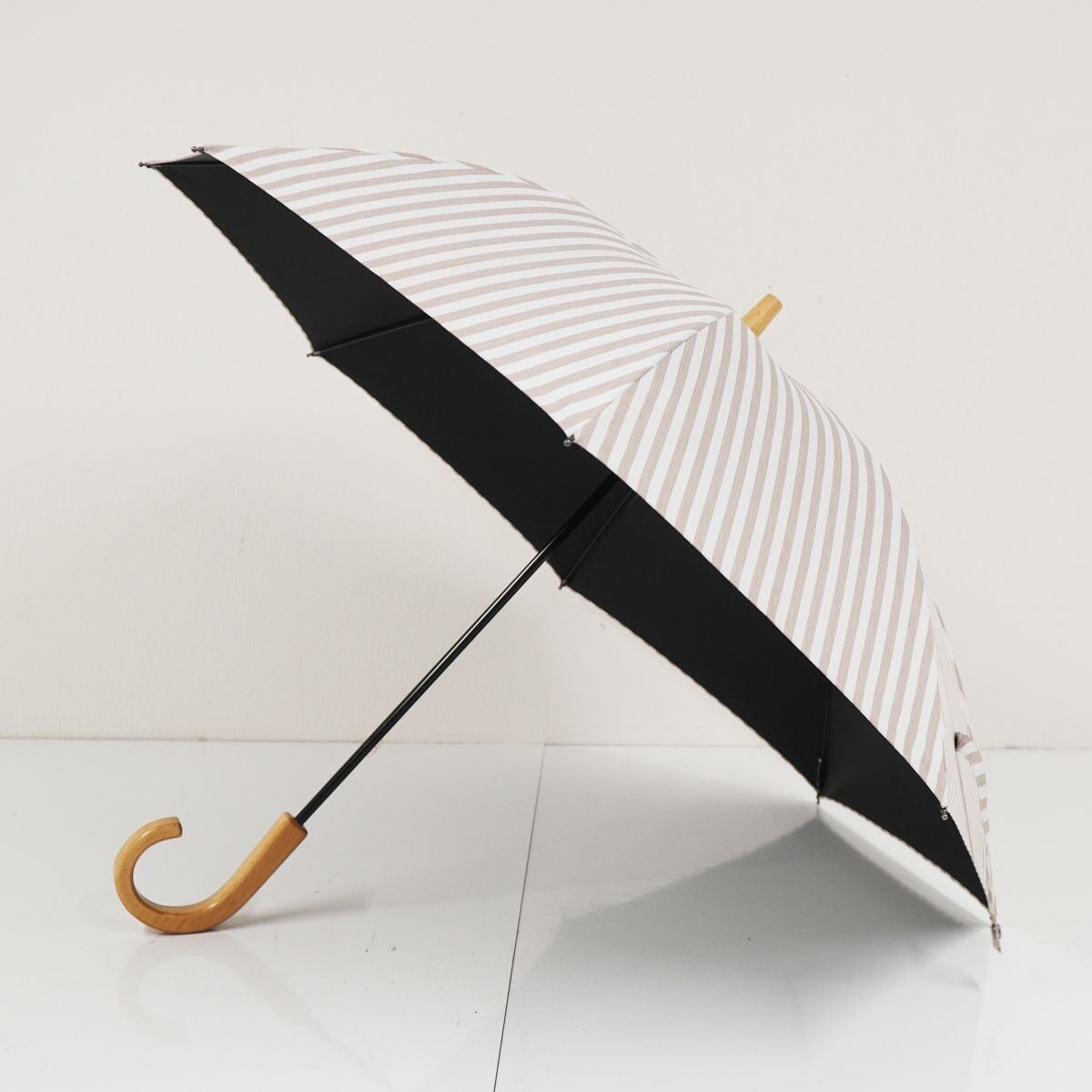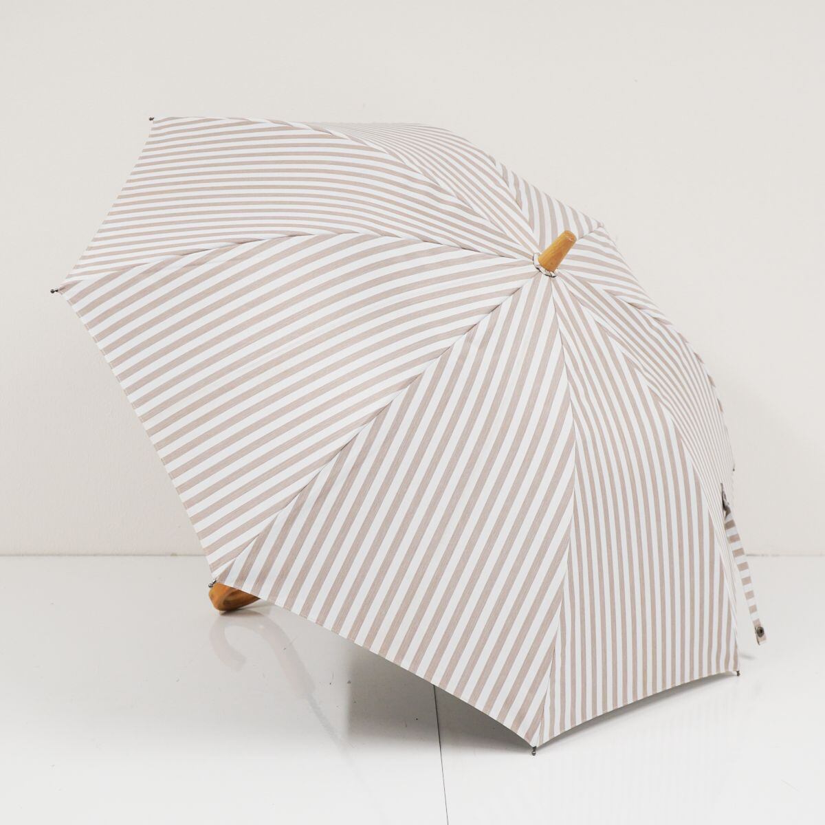 サンバリア100 完全遮光日傘 USED品 Sサイズ ストライプ モカ UV 遮熱 47cm S1191
