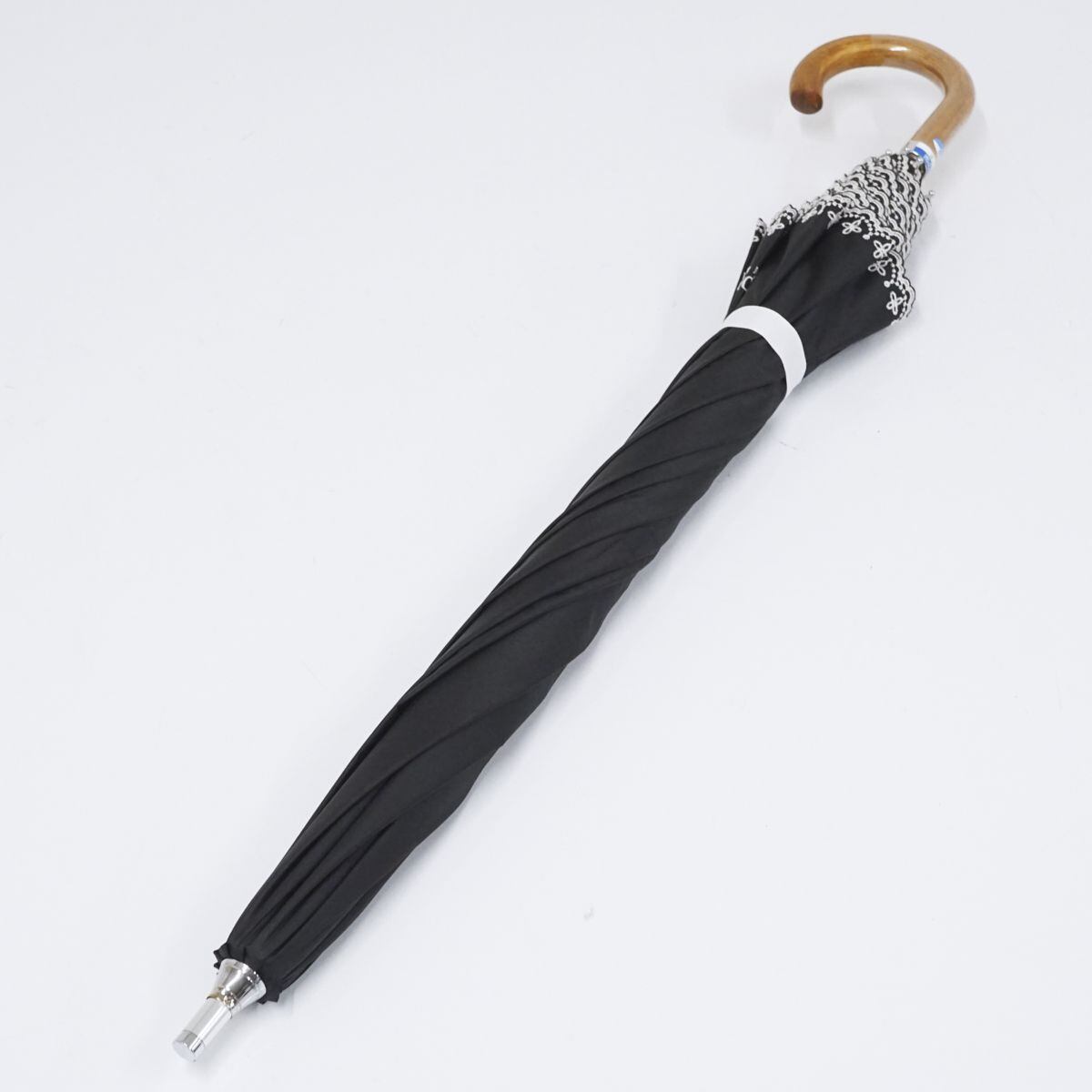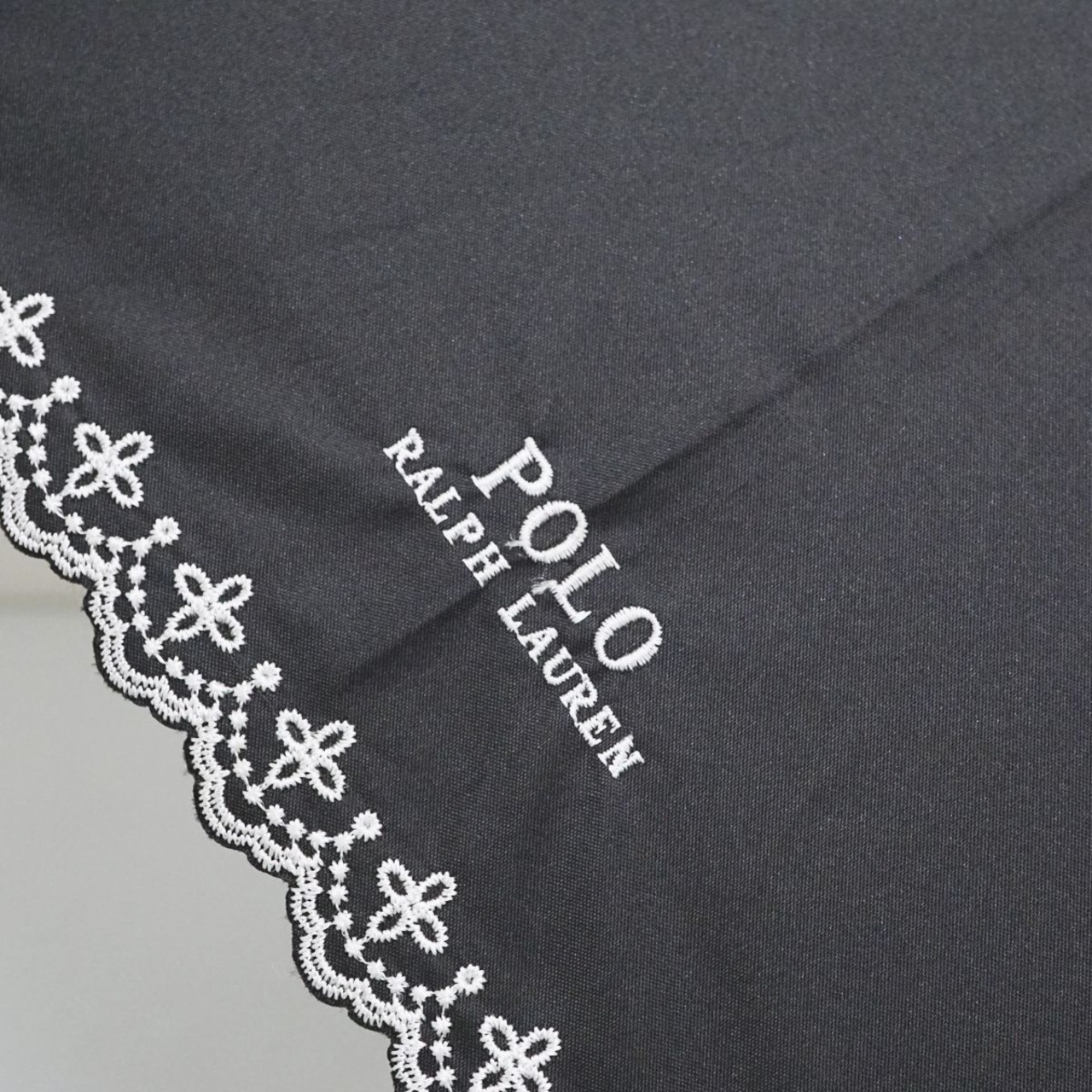 日傘 Polo Ralph Lauren ラルフローレン 晴雨兼用日傘 USED美品 フリルカット 花刺繍 ブラック 大きめ UV 遮光 55cm S1209