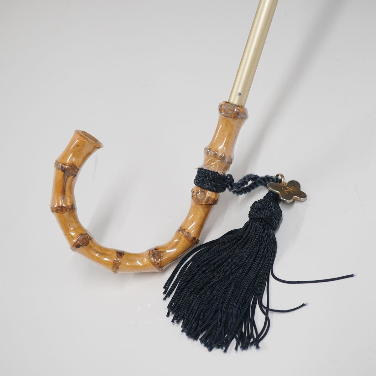節を活かした寒竹の手元のナチュラルな雰囲気も、生地のデザインにピッタリです。