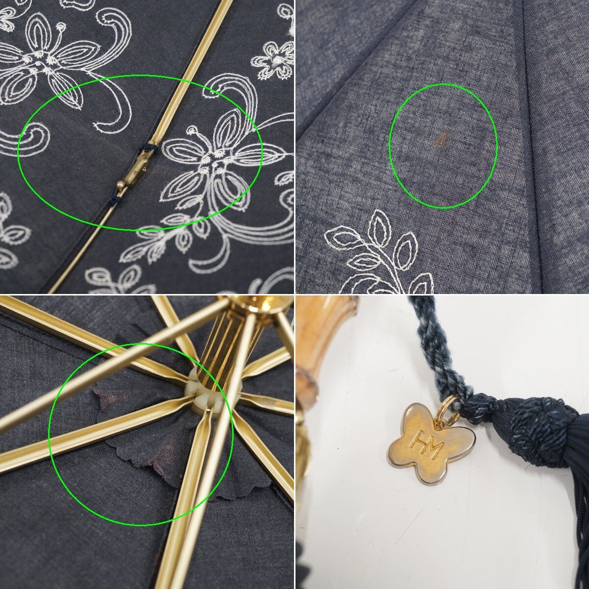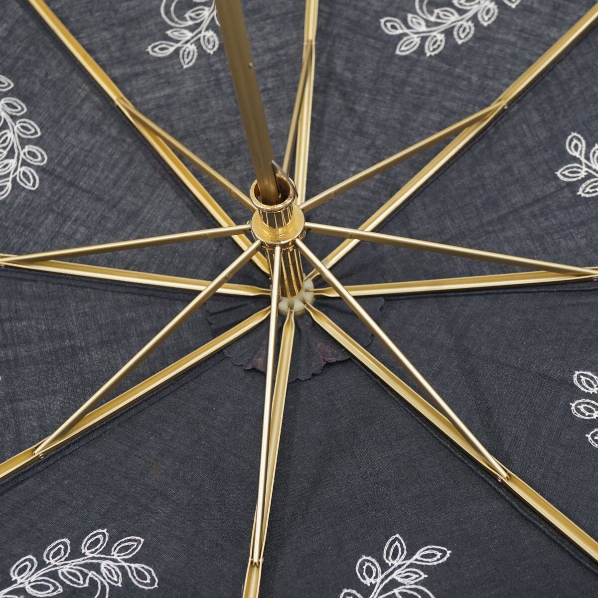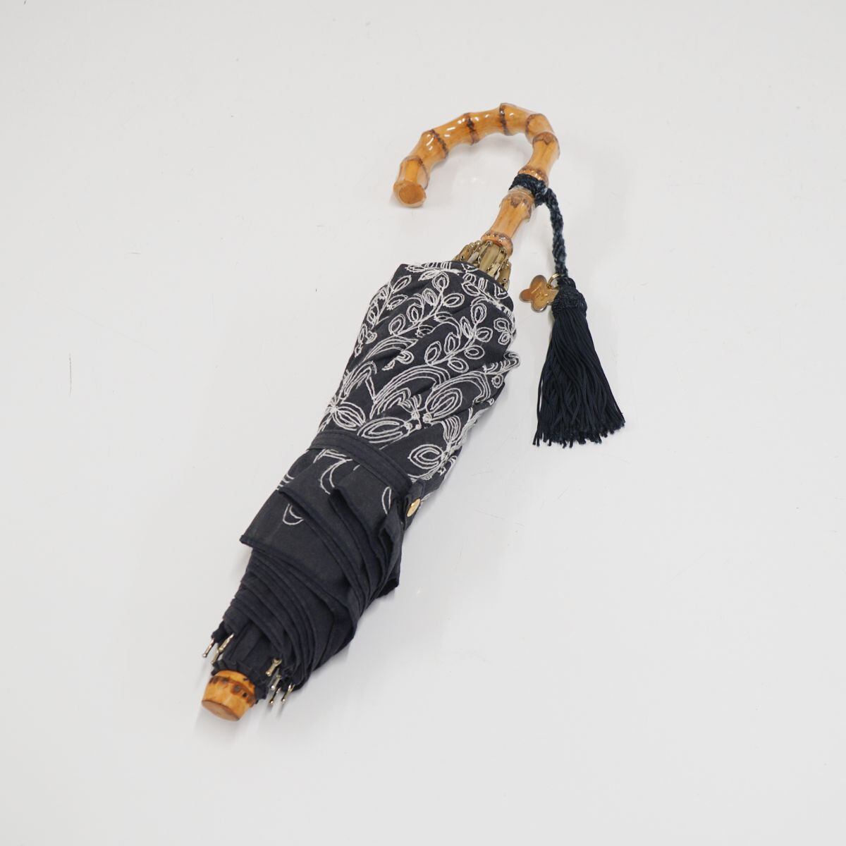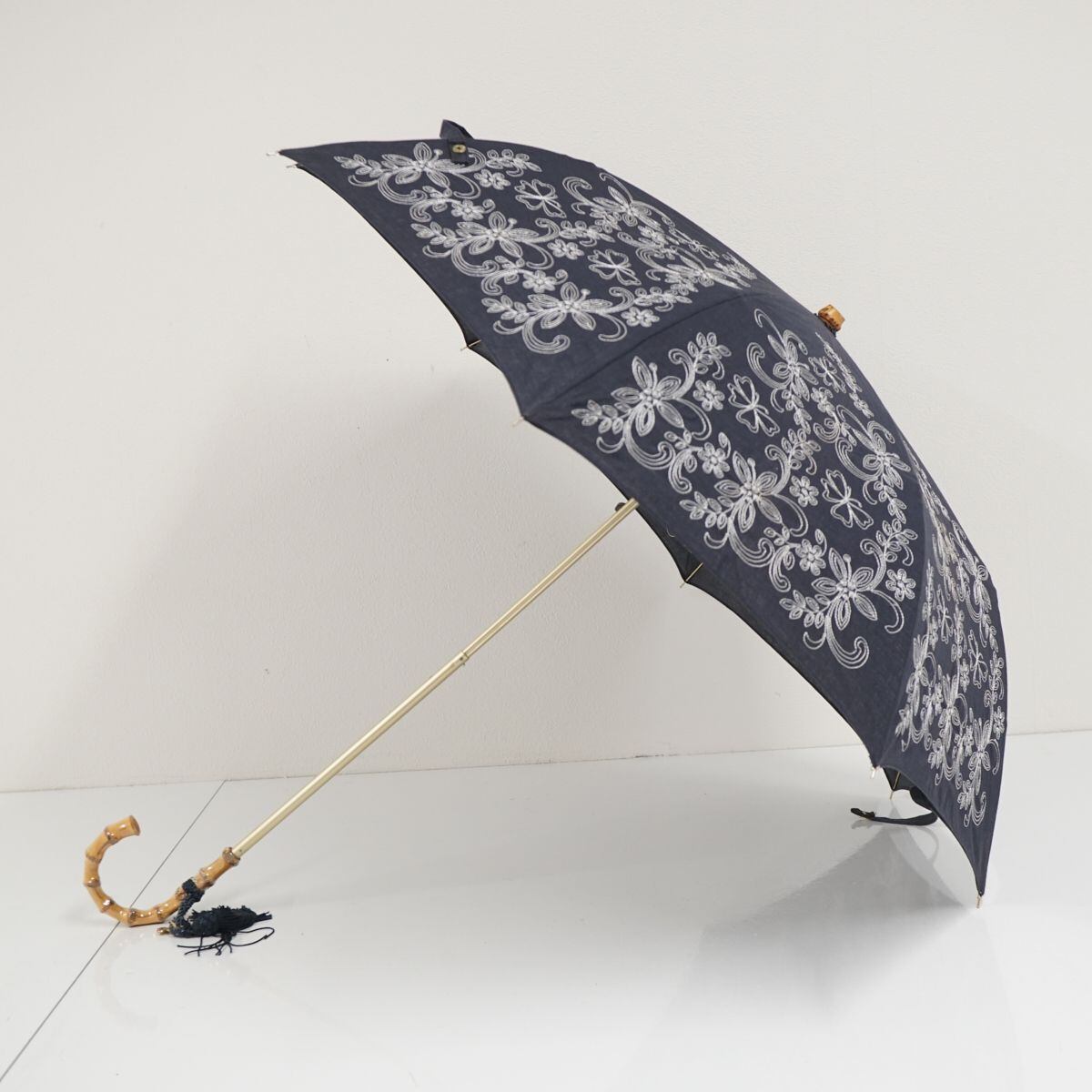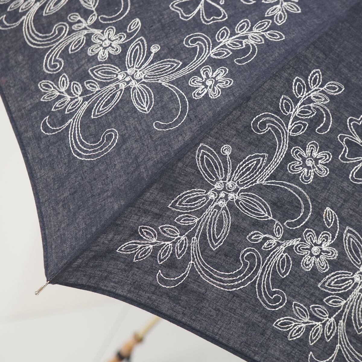 折りたたみ日傘 HANAE MORI ハナエモリ USED美品 フラワー刺繍 寒竹手元 ネイビー 55cm FA8558