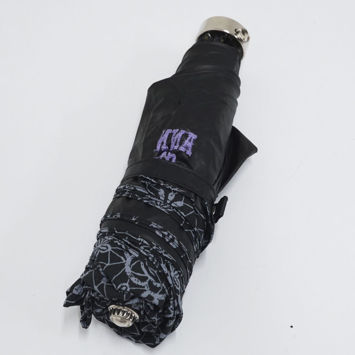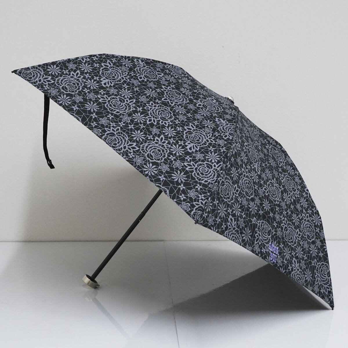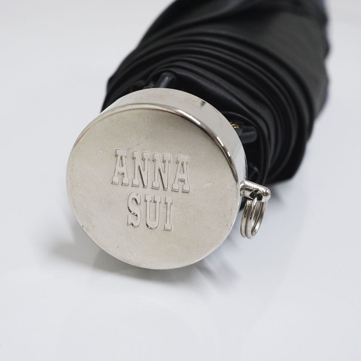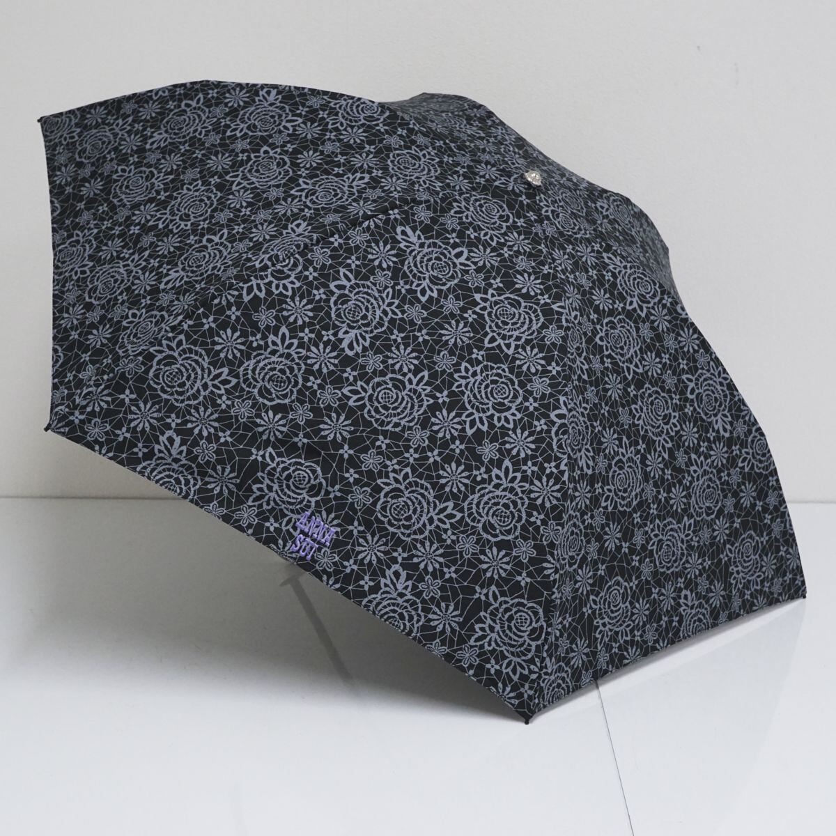 折りたたみ日傘 ANNA SUI アナスイ USED美品 晴雨兼用 ブラック ローズ ロゴ UV 遮光 FS8556