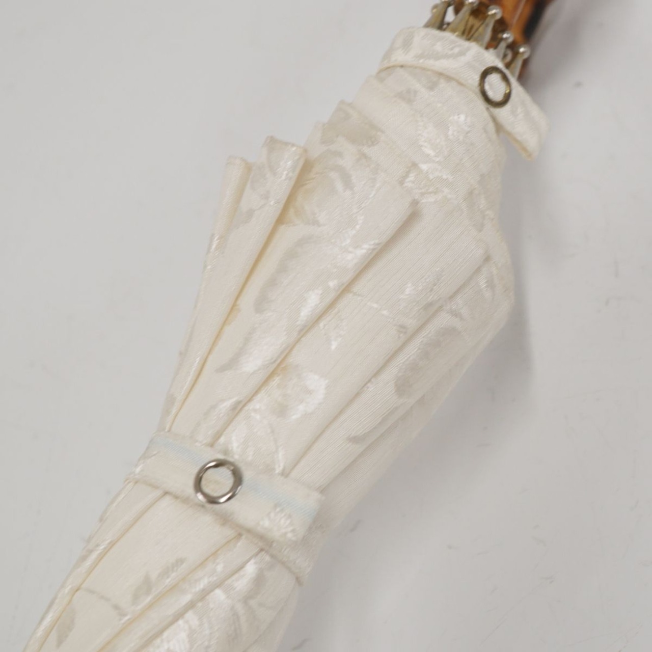 生地の美しい光沢、そして、寒竹のハンドルがラグジュアリーな雰囲気を醸し出します。