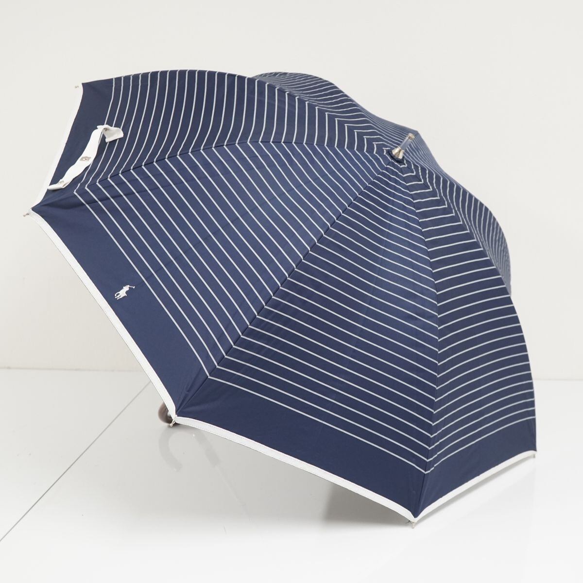 日傘 Polo Ralph Lauren ポロラルフローレン USED美品 晴雨兼用 ボーダー ネイビー UV 遮光 55cm A1221