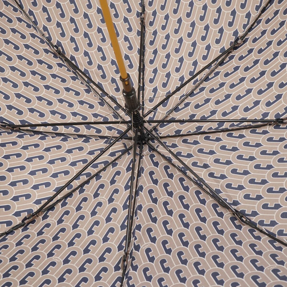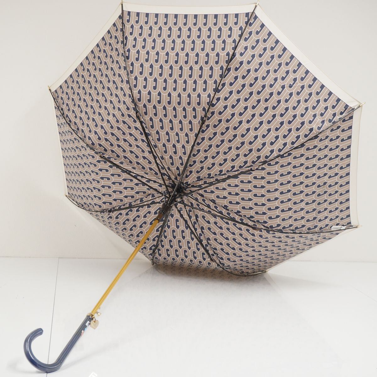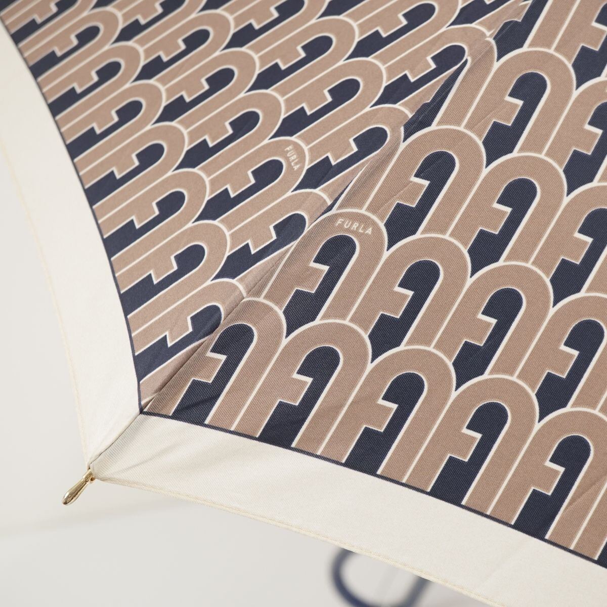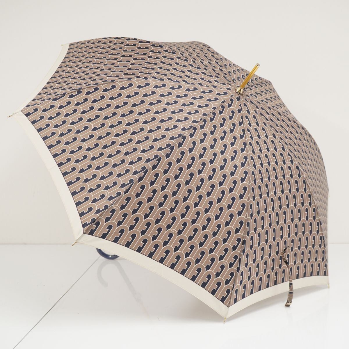 FURLA フルラ 傘 USED美品 アーチロゴ ブラウン ジャンプ 耐風 60cm S1223