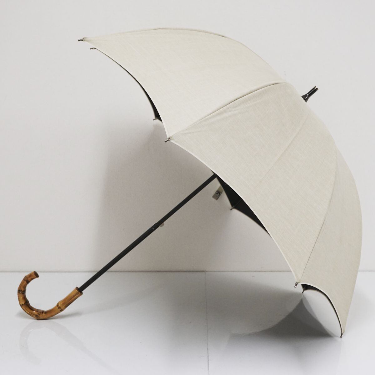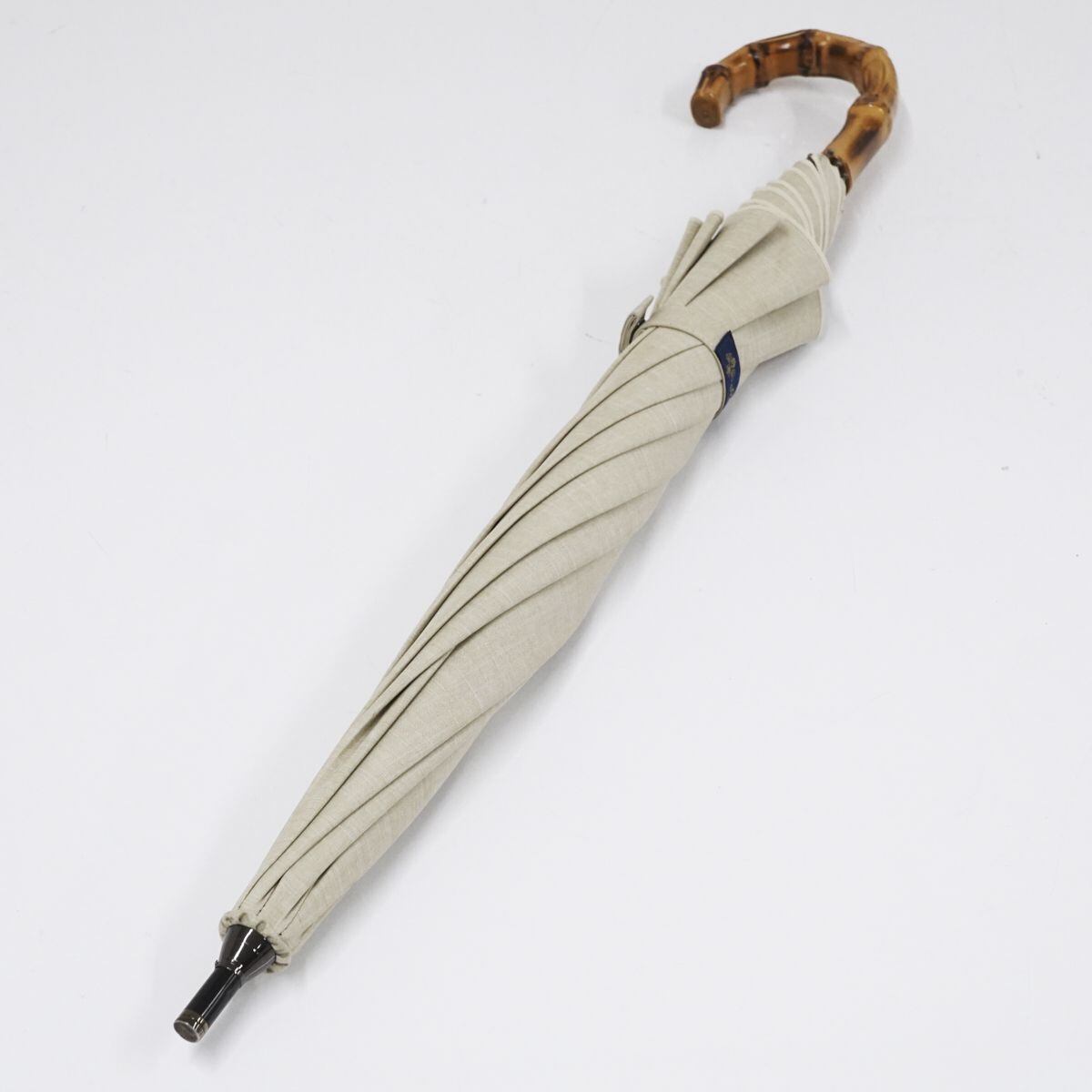 芦屋ロサブラン 完全遮光日傘 USED美品 ショート ダンガリー ベージュ プレーン シンプル 寒竹 UV 遮光 遮熱 グラス骨 50cm S1227