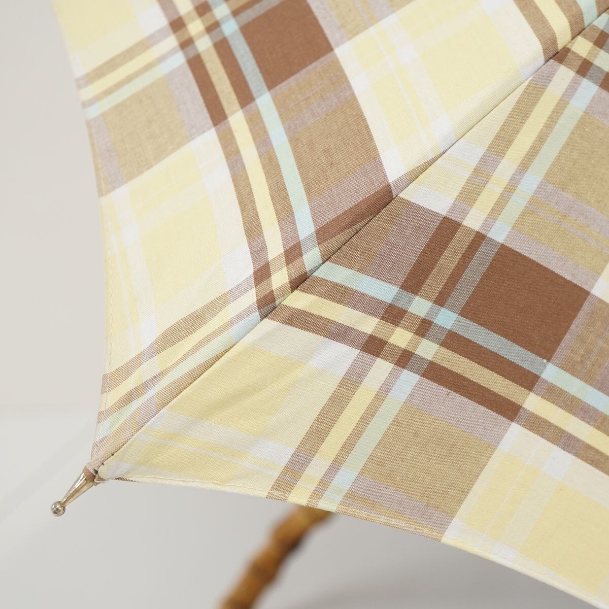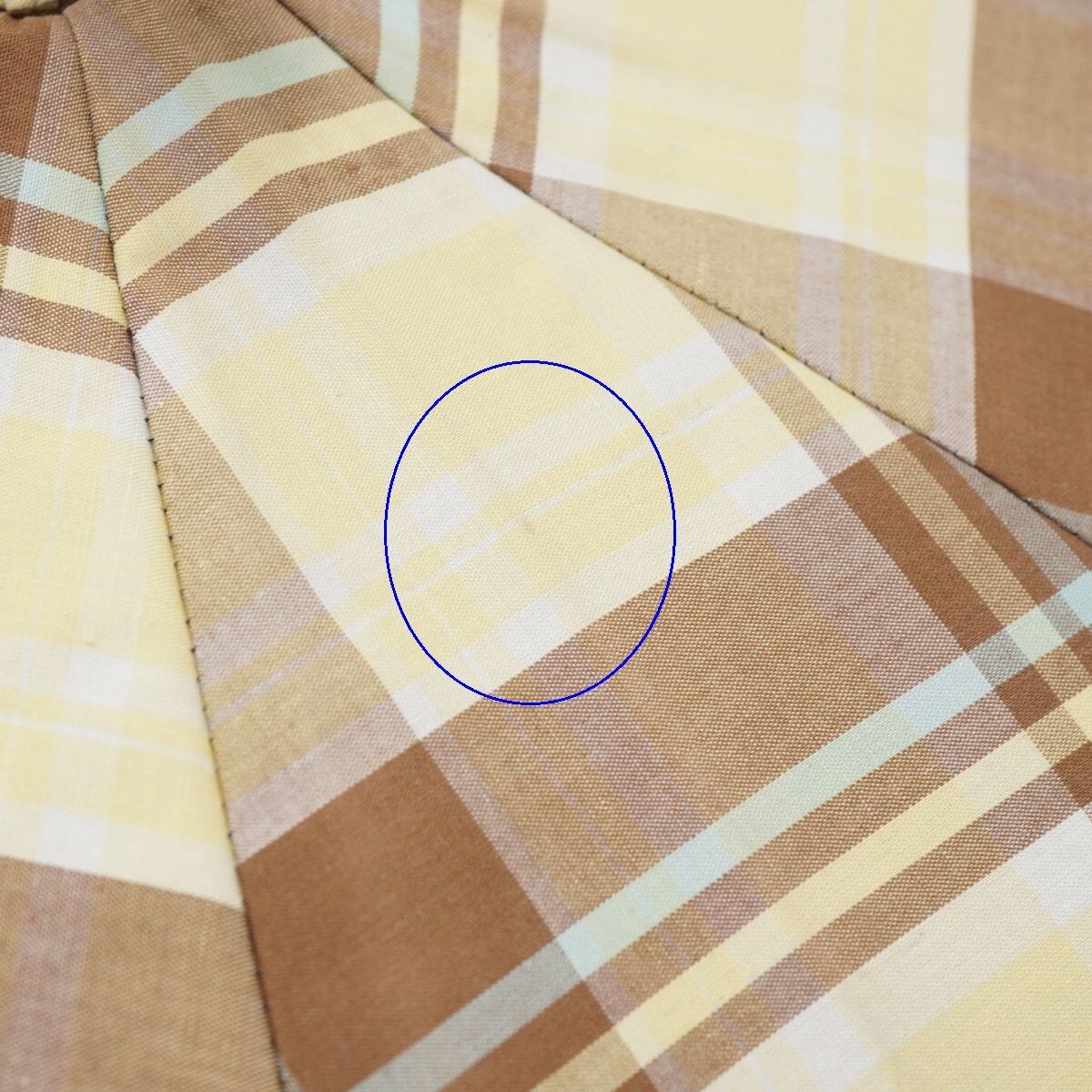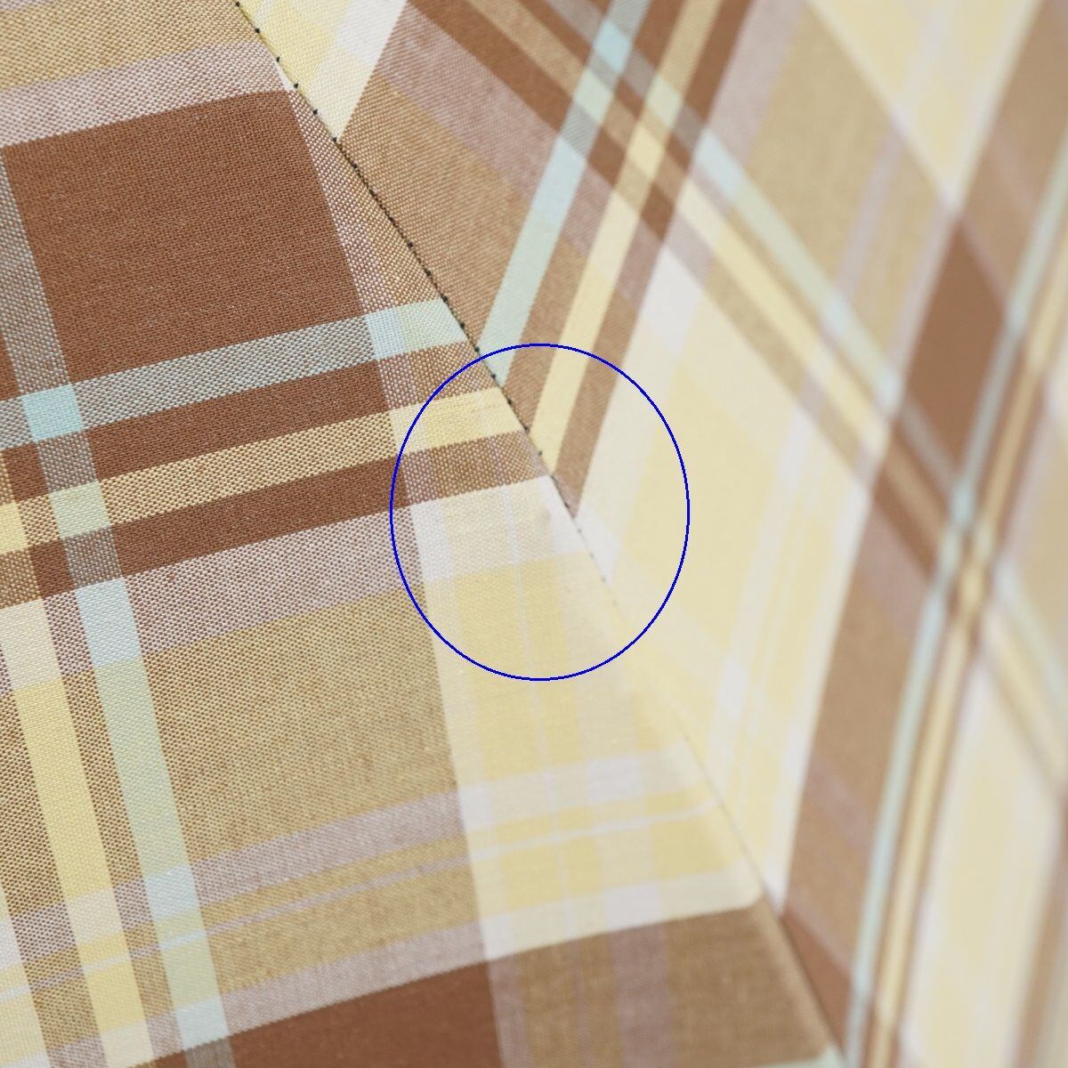 表地はライトイエローベースのチェックパターン、内側はブルーの遮光コーティングを施しています。