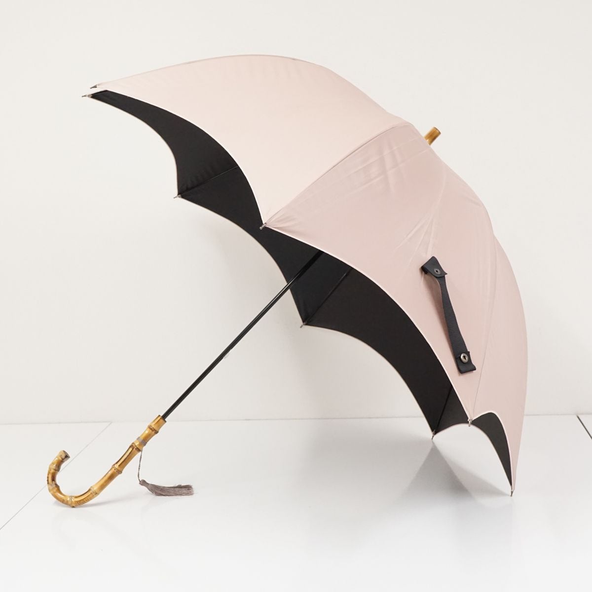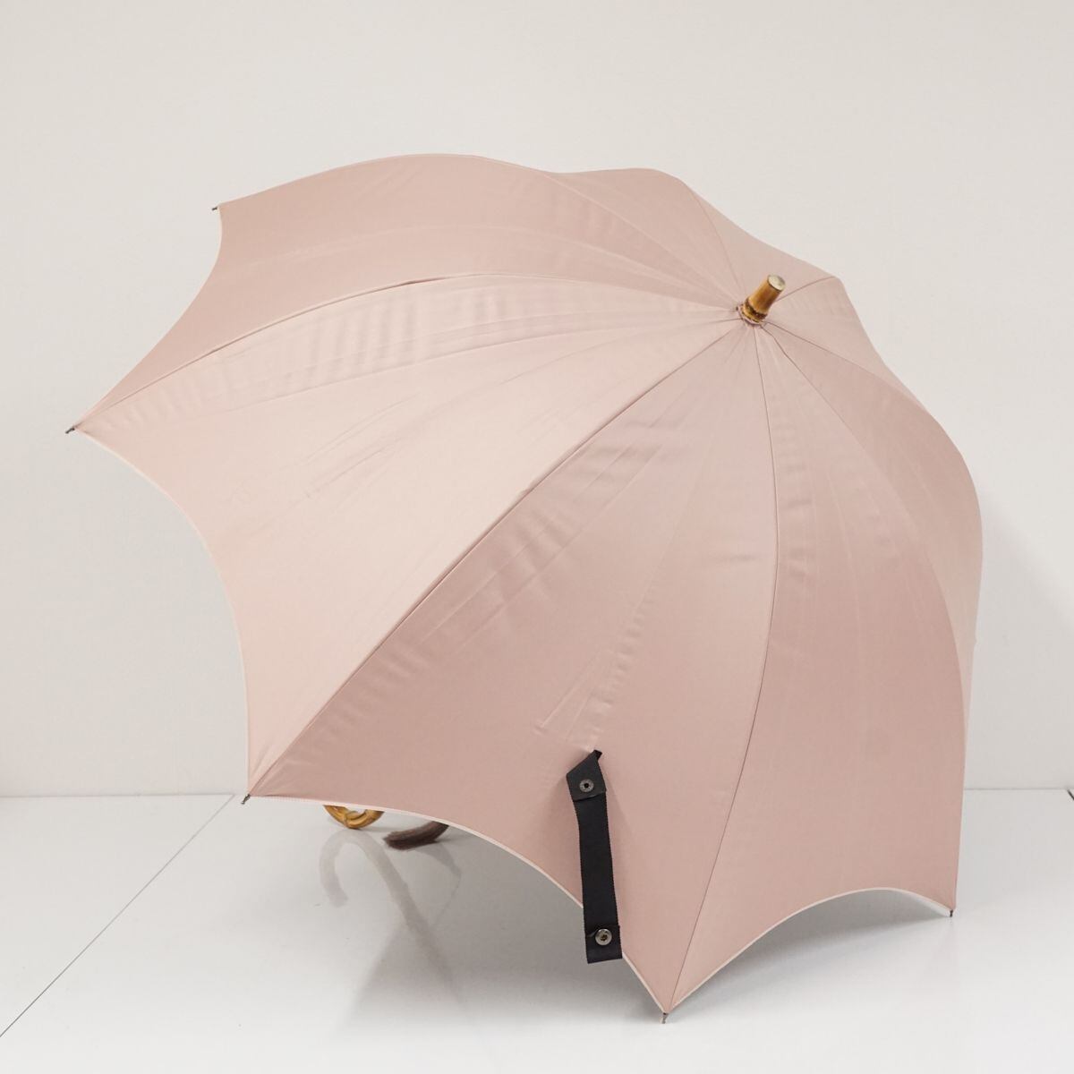 日傘 (株)ソレイユ 晴雨兼用 傘 USED美品 ドーム型 前衛的 完全遮光 シンプル タッセル グレイシャルピンク 58cm UV A1201