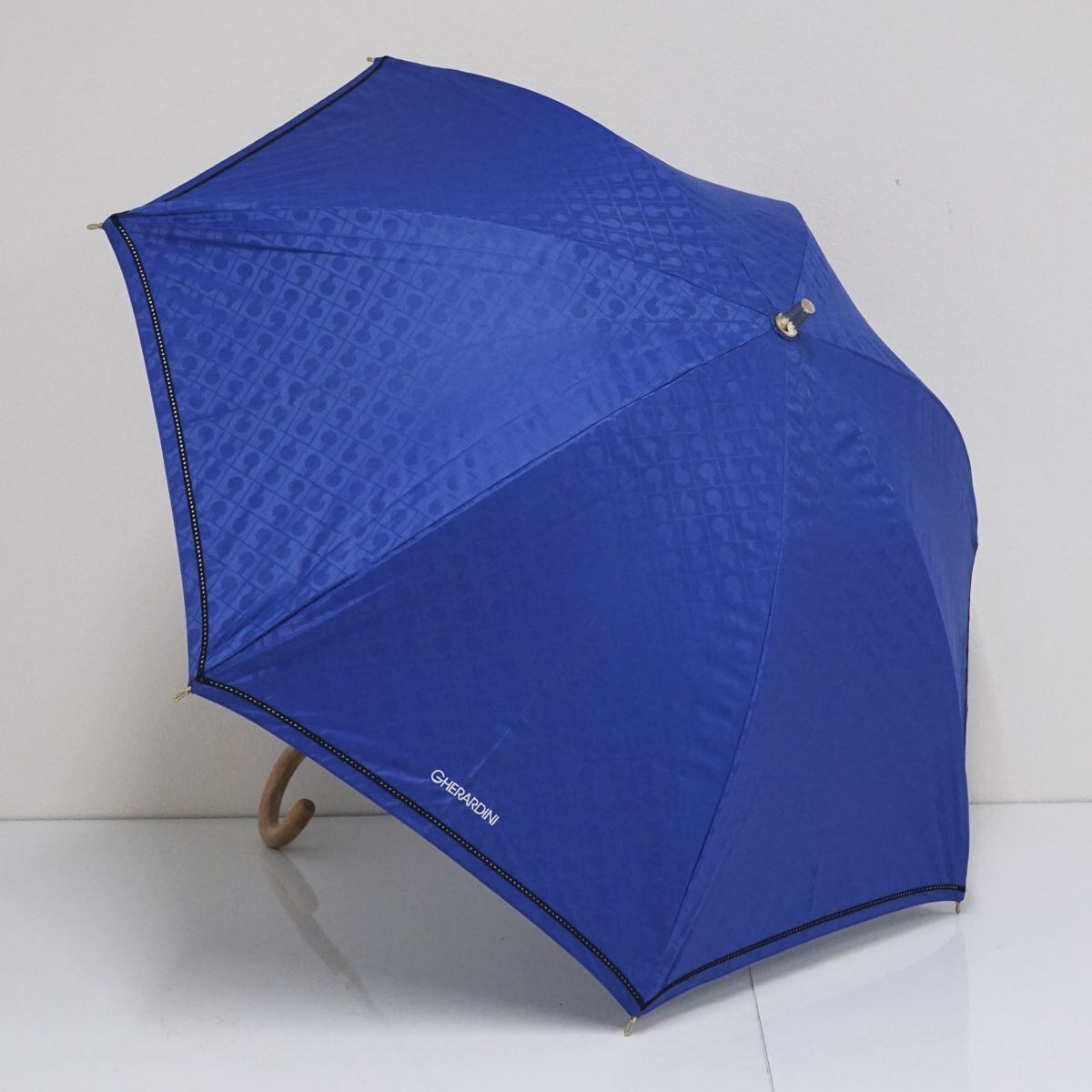 日傘 GHERARDINI ゲラルディーニ 晴雨兼用日傘 USED美品 ブルー モノグラム ロゴ刺繍 遮光 グラス骨 軽量 47cm S1225