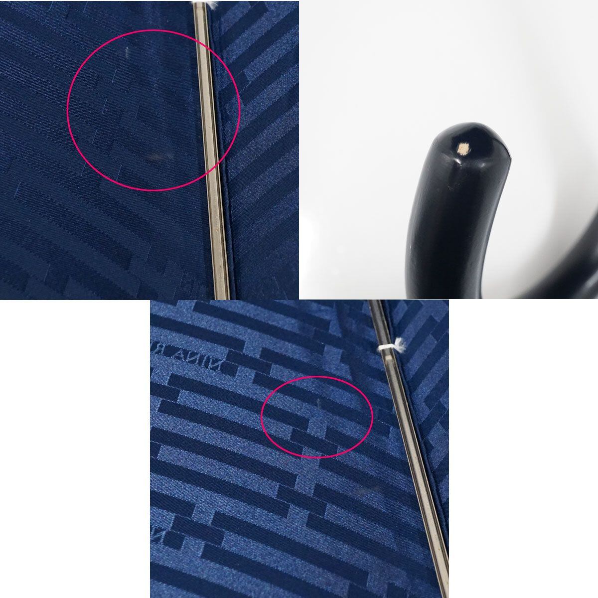傘 NINA RICCI ニナリッチ USED美品 スクエア チェーン ネイビー エレガント ジャンプ 60cm A1197