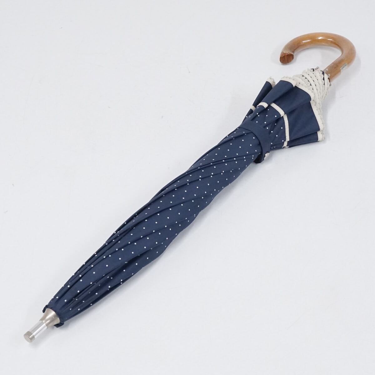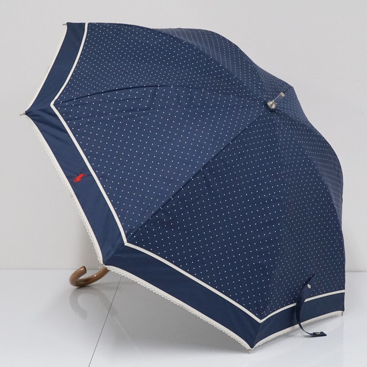 ドットプリントとネイビーとアイボリーの組み合わせがチャーミングなラルフローレンのパラソルです。