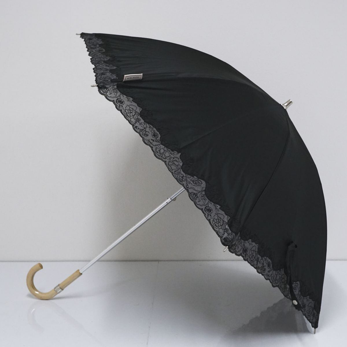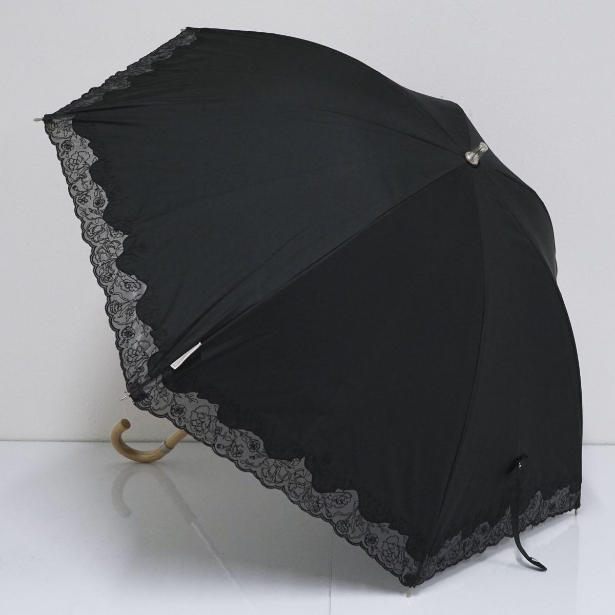 日傘 NINA RICCI ニナリッチ USED美品 サマーシールドLi 晴雨兼用 刺繍 ブラック フラワー UV 遮光 遮熱 グラス骨 50cm S1233