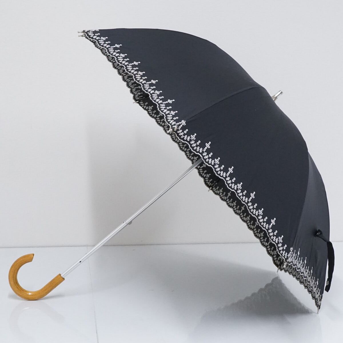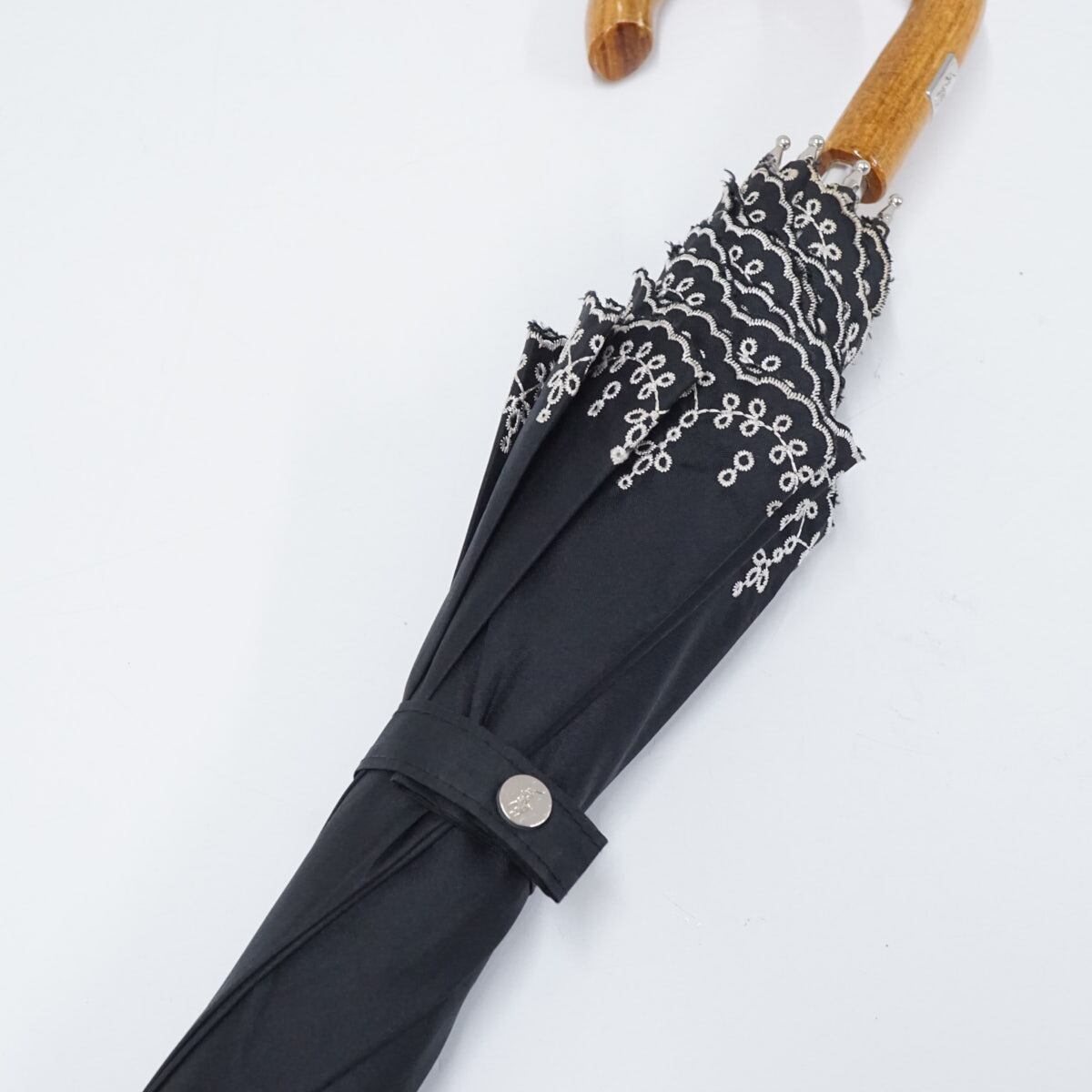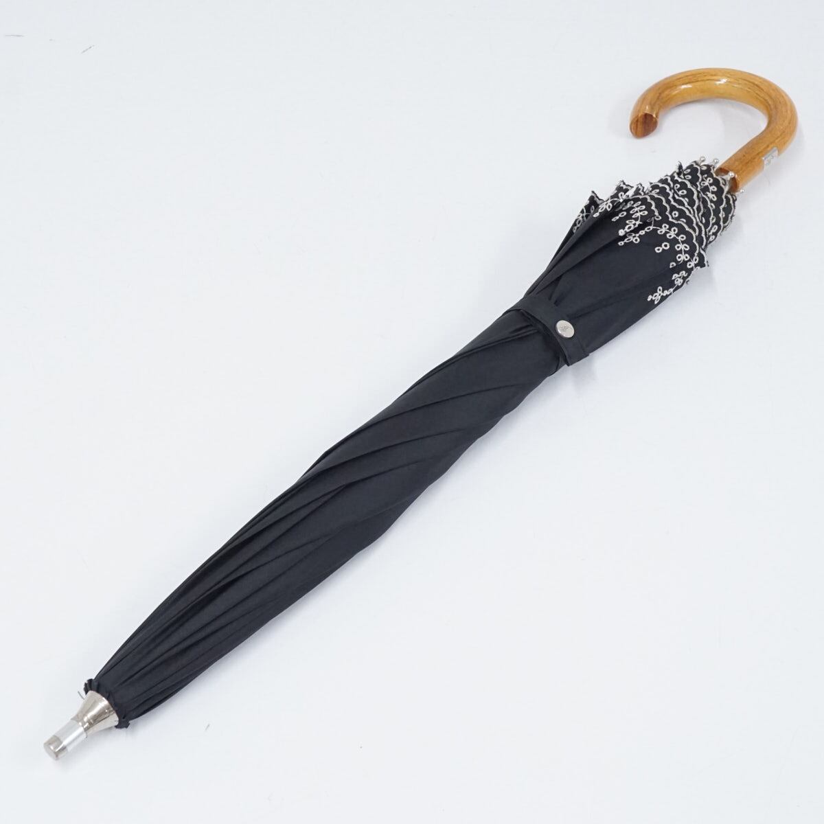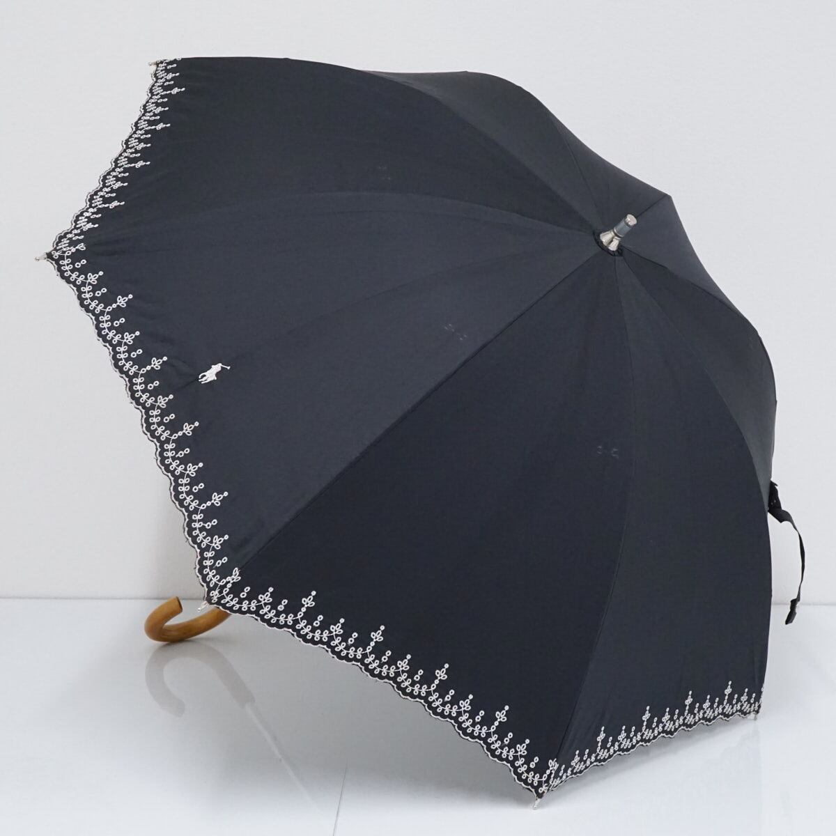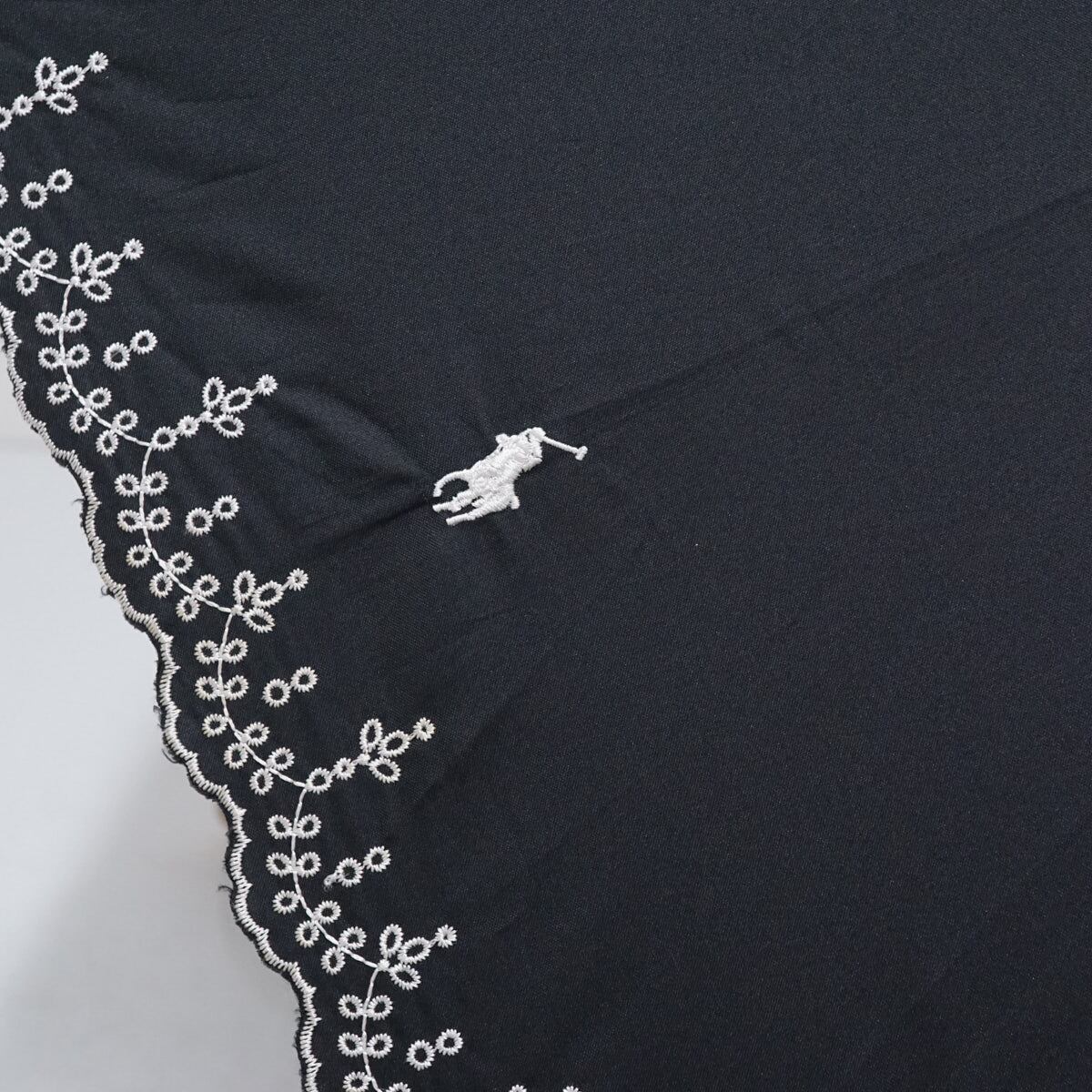 日傘 Polo Ralph Lauren ポロラルフローレン USED美品 フリル刺繍 ブラック 黒 晴雨兼用 UV 遮光 47cm S2582