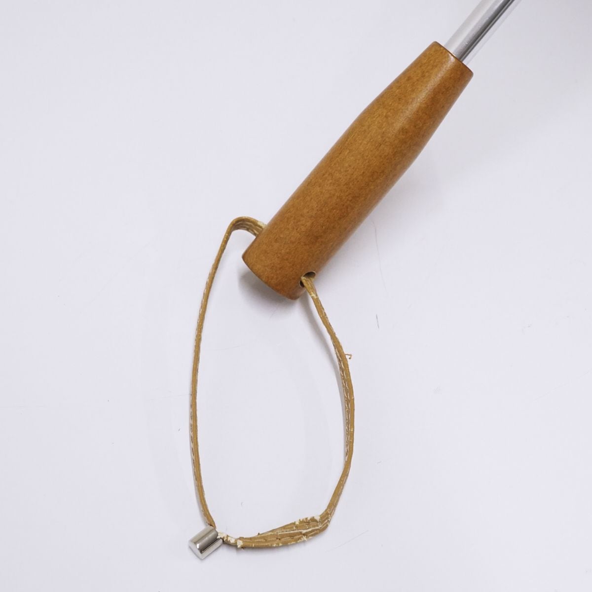 そして、木製のストレートハンドルと、レザー(合皮)の紐が全体をナチュラルにまとめています。