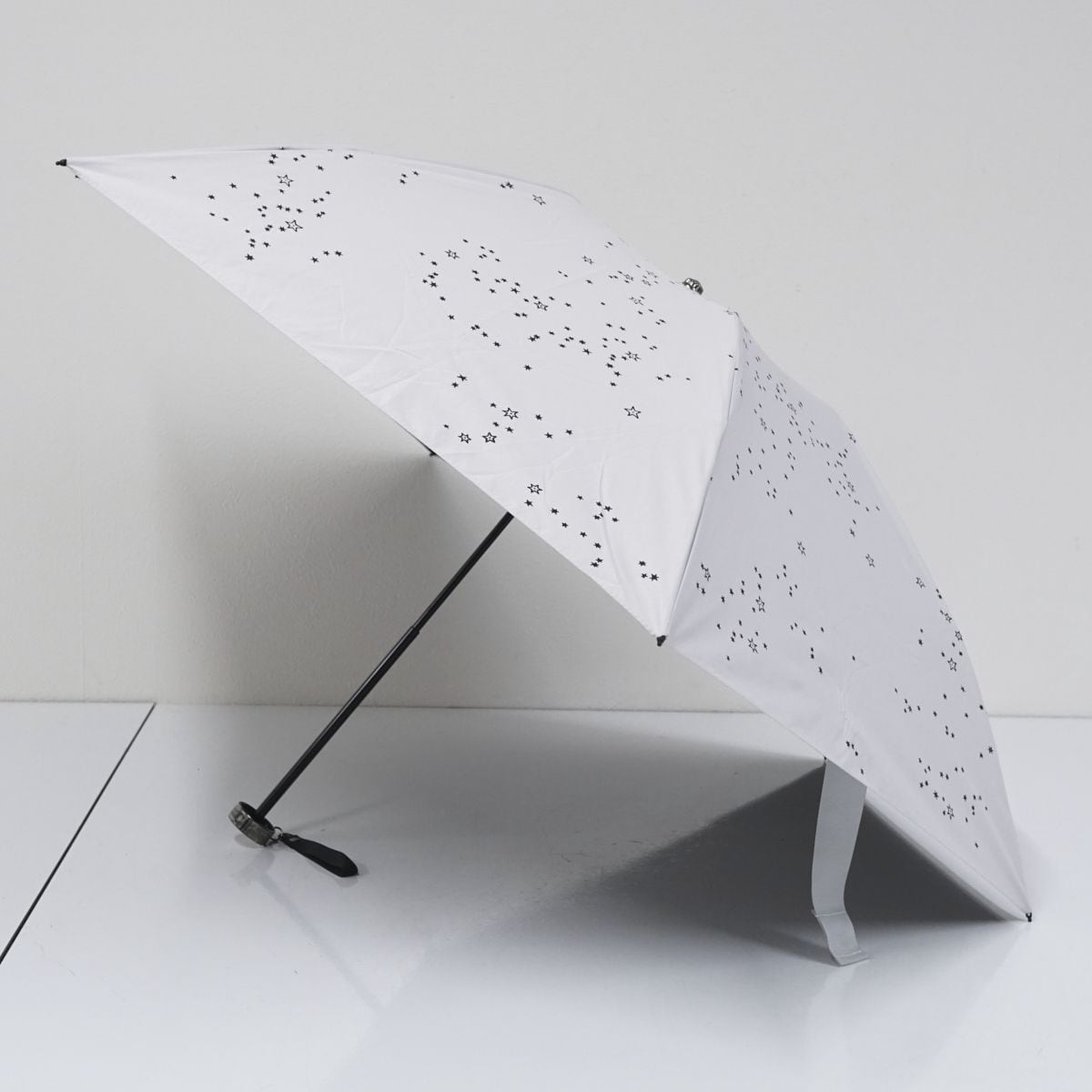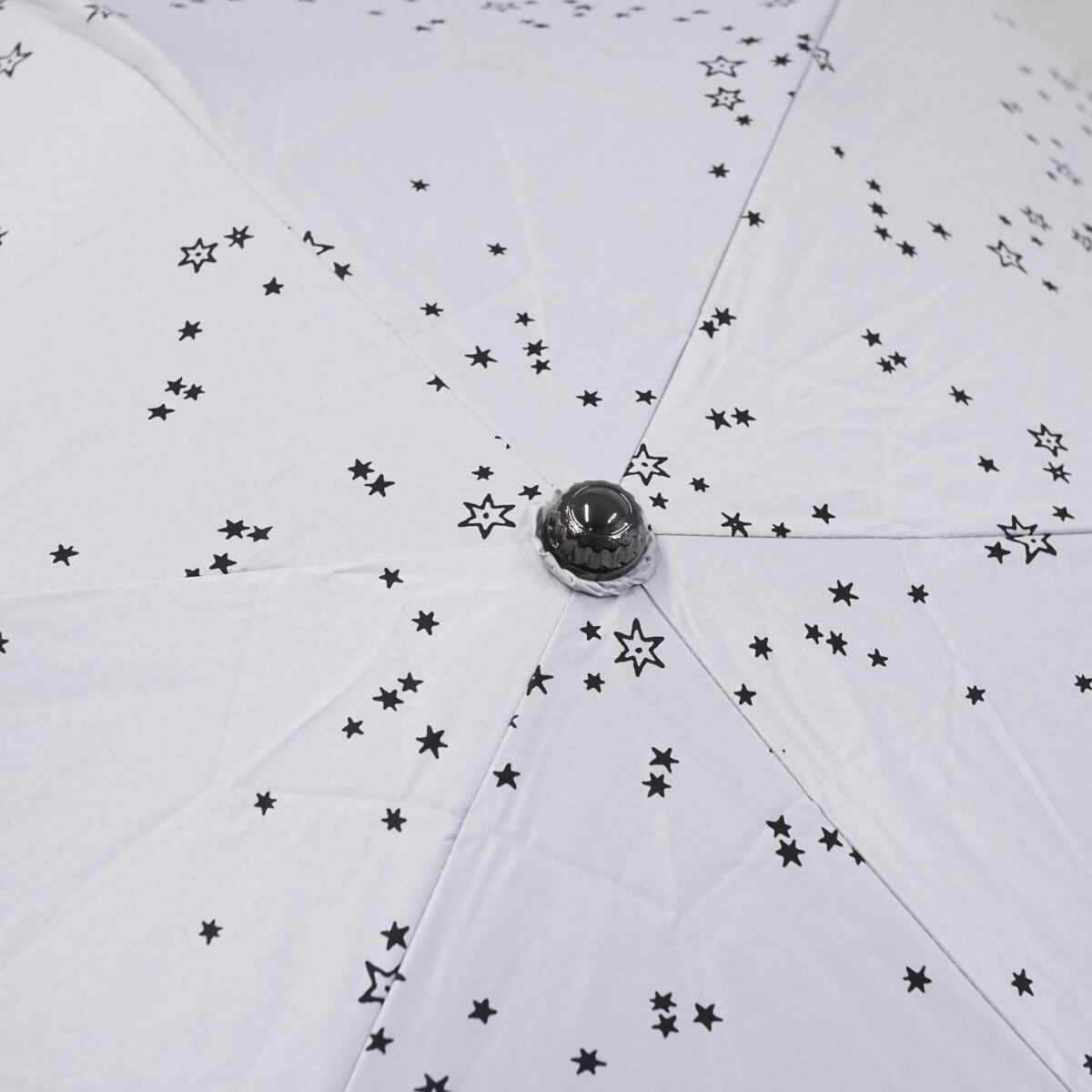 ホワイトの生地にブラックの星柄が映えるキュートなデザインのパラソルです。