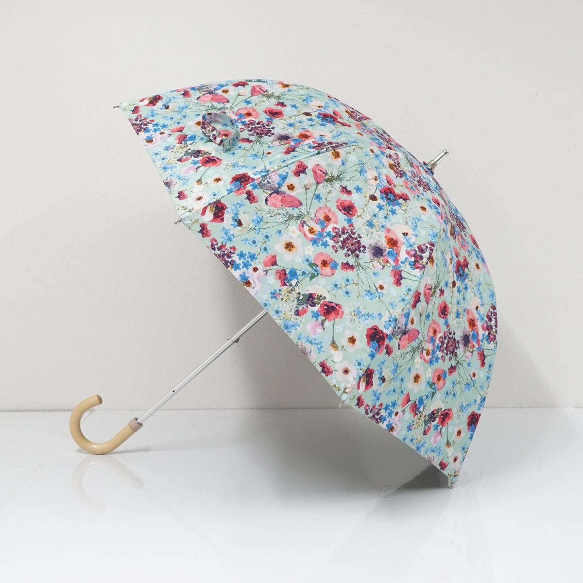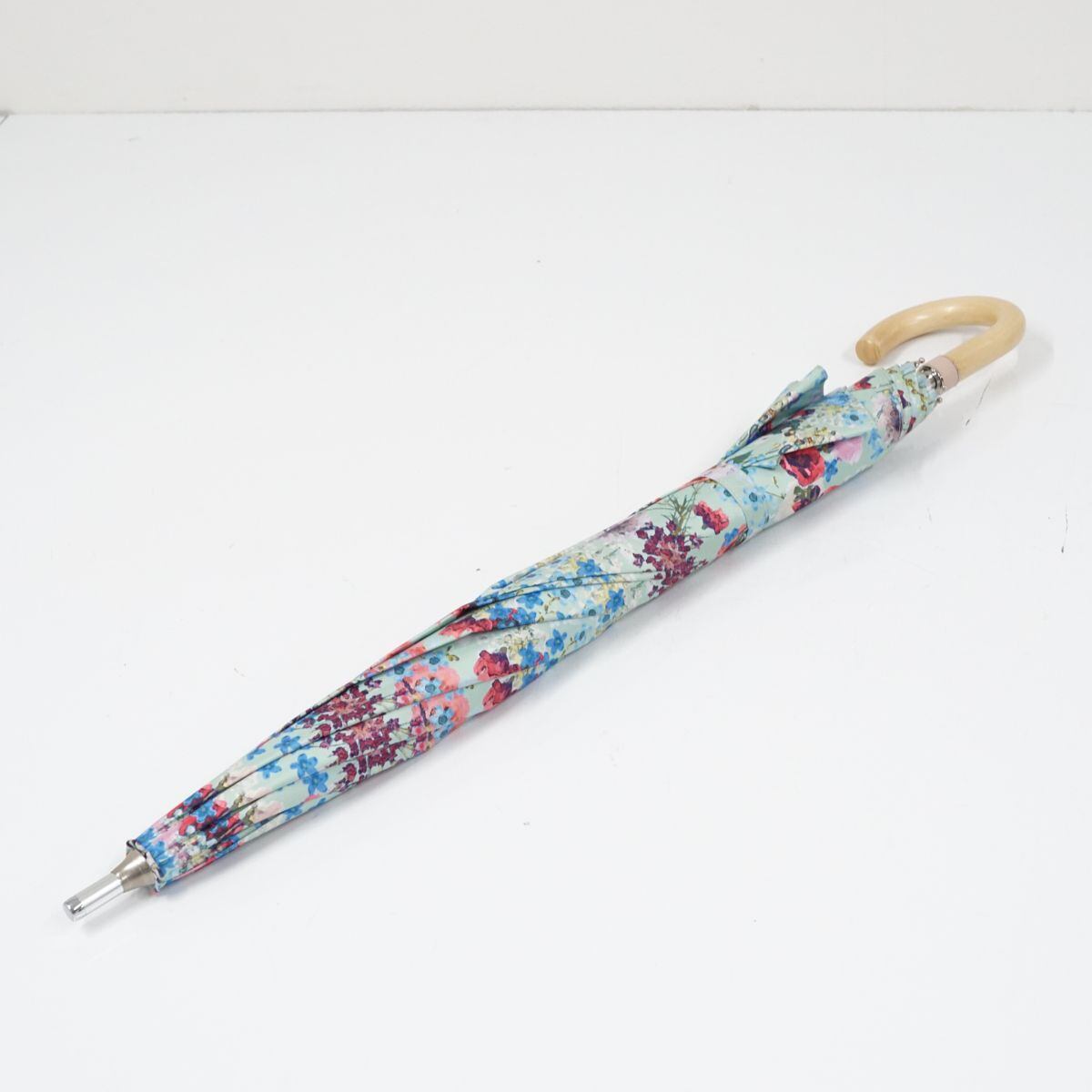 日傘 MOONBAT ムーンバット USED美品 晴雨兼用 レディース グリーン アートフラワー UV グラス骨 50cm A1262