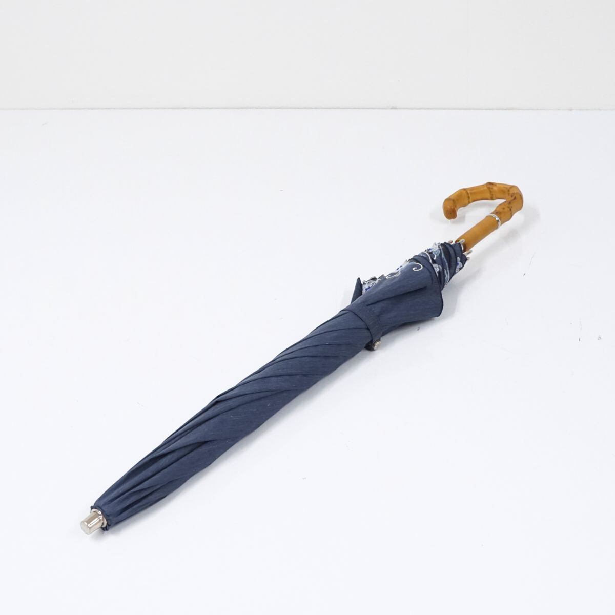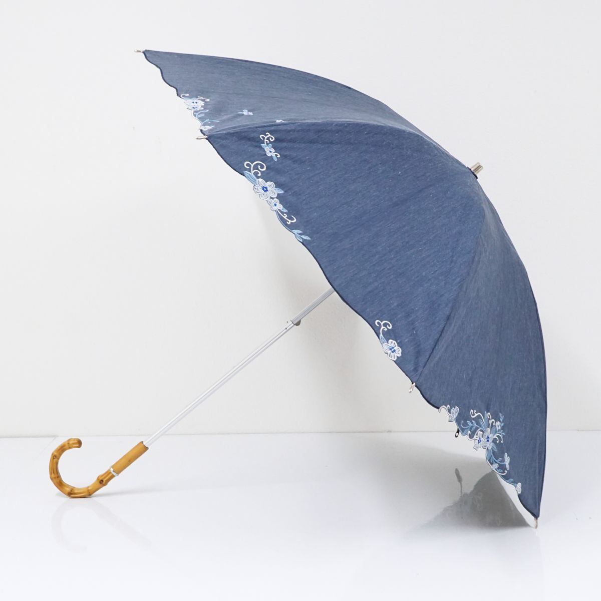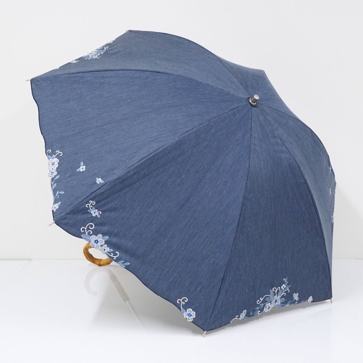 日傘 晴雨兼用 Blao ブラオ USED美品 シャンブレー ブルー 東レサマーシールドLi フラワー刺繍 グラス骨 遮光 遮熱 UV 50cm S1258
