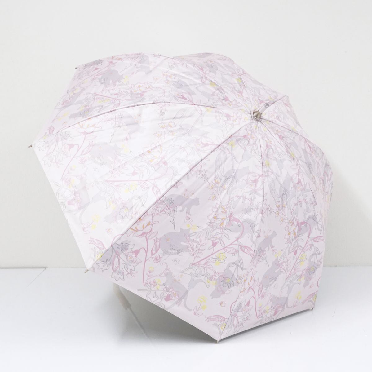 日傘 MOONBAT ムーンバット USED美品 晴雨兼用 レディース ピンク シルエット アートキャット UV グラス骨 50cm A1261