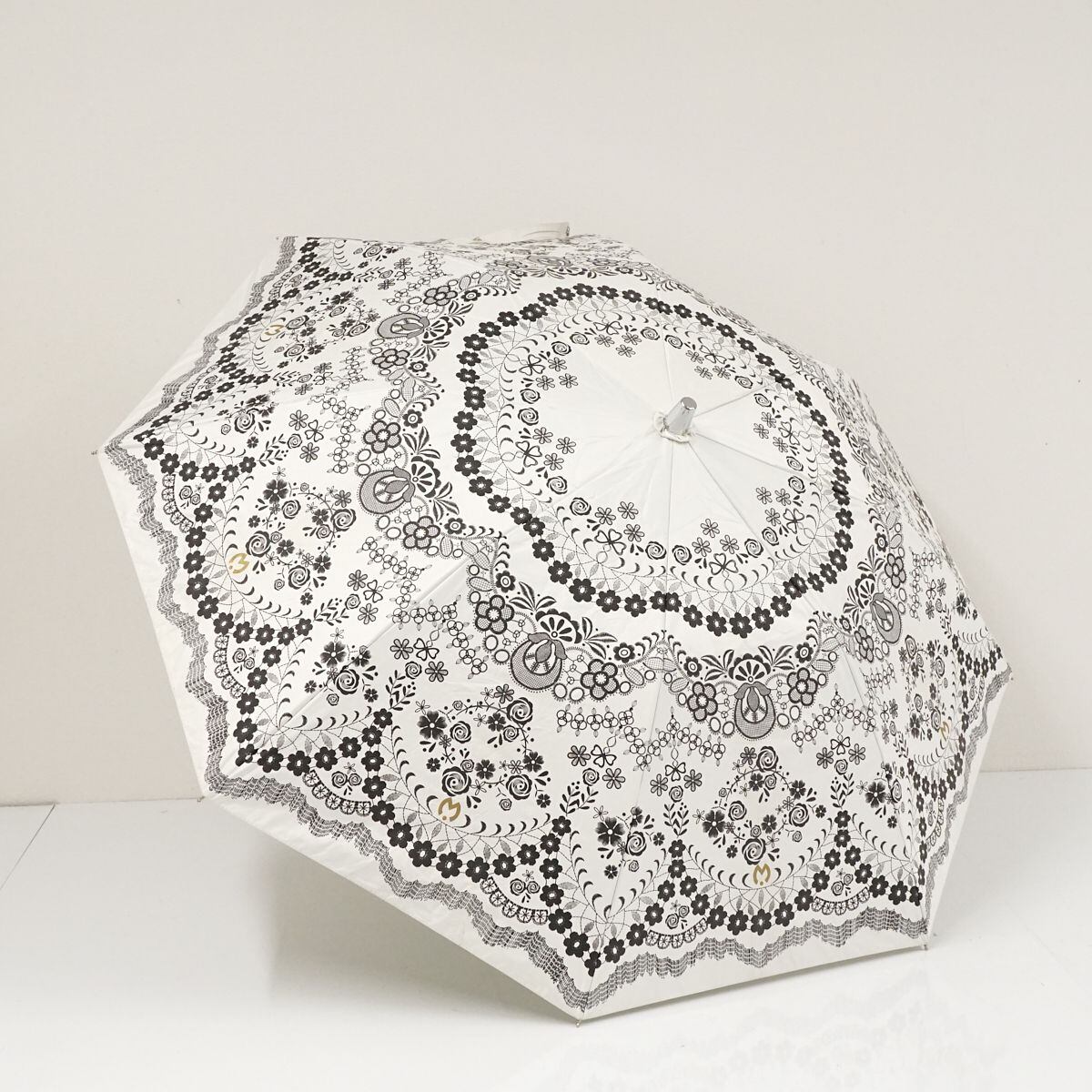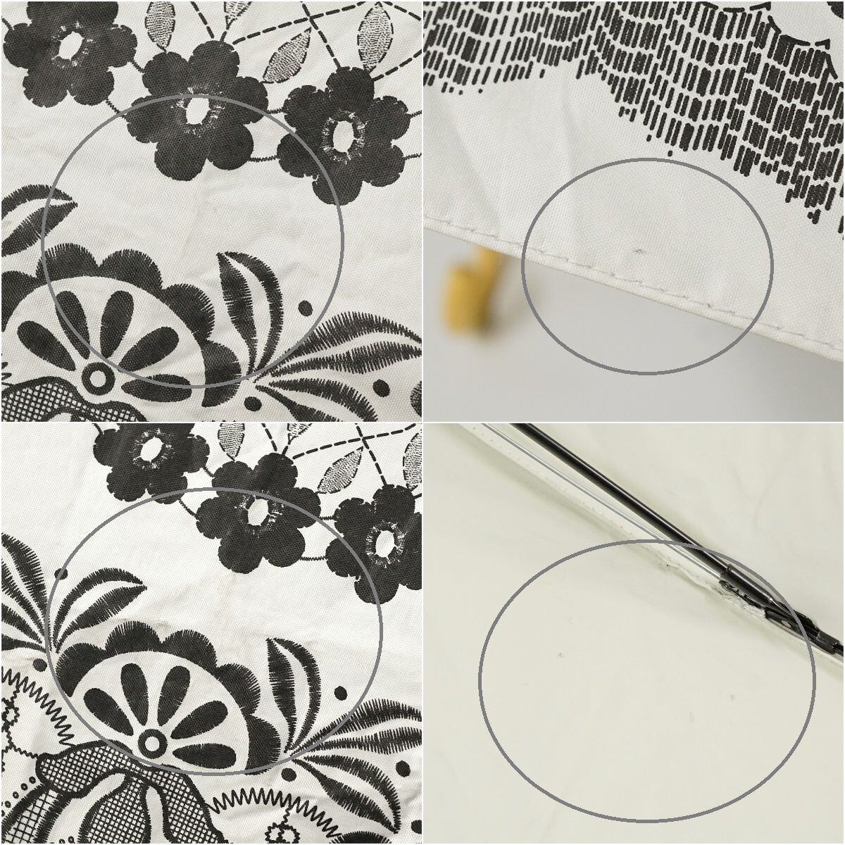 折りたたみ日傘 mila schon ミラショーン USED美品 晴雨兼用 ホワイトxブラック ロゴ 花柄 楽折ジャンプ式 50cm FA8575