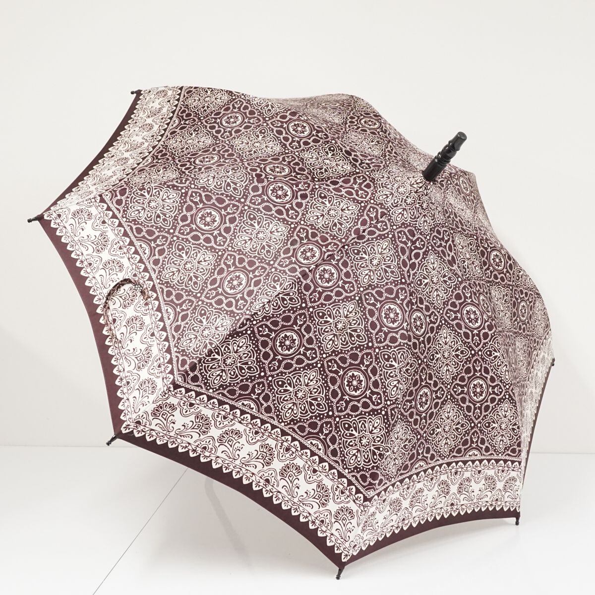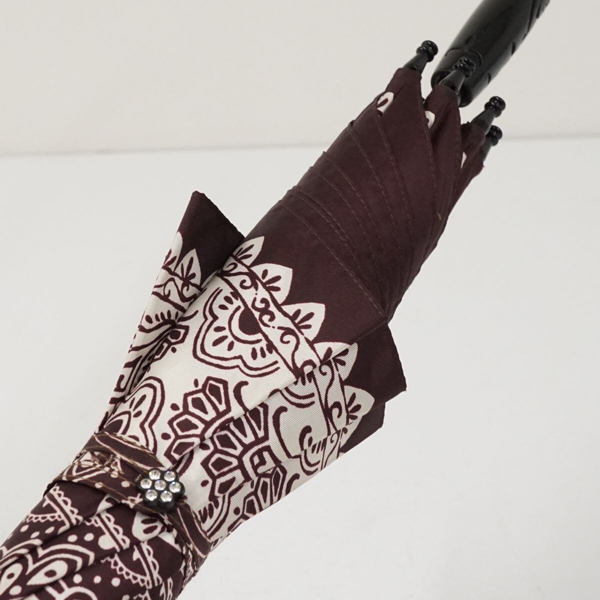 傘 ANNA SUI アナスイ パゴダ USED美品 フラワー エキゾチック エスニック ブラウン系 グラス 58cm A1199
