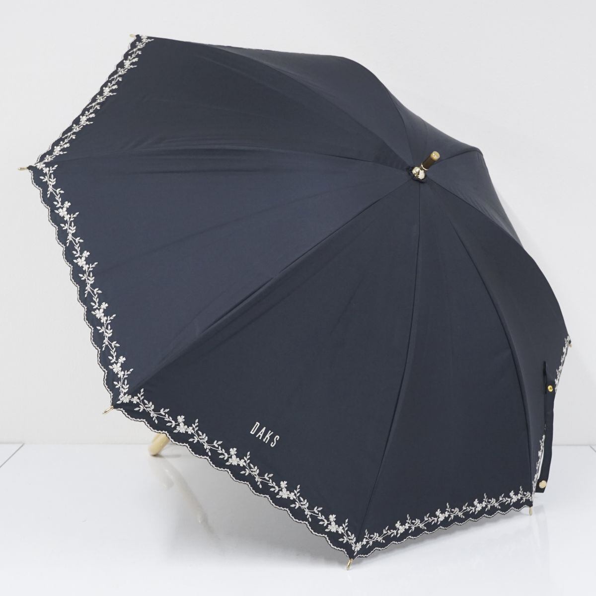 日傘 DAKS ダックス USED美品 ロゴ刺繍 晴雨兼用 遮光 UV スカラップ刺繍 47cm S1257