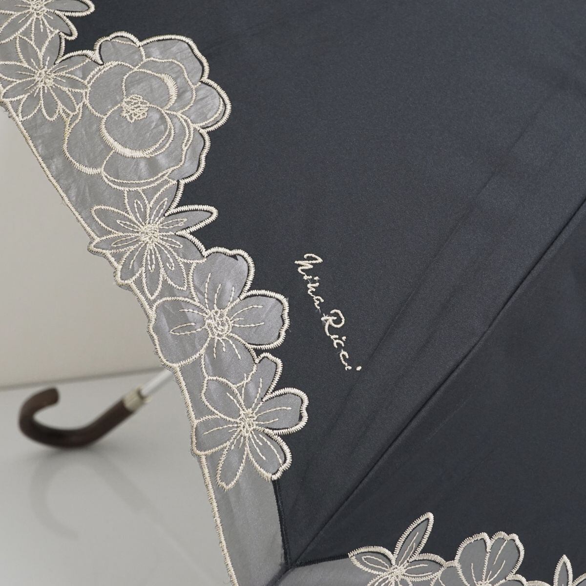 日傘 NINA RICCI ニナリッチ 晴雨兼用 USED美品 フラワー オーガンジー ブラック 遮光 遮熱 軽量 UV 50cm A1266