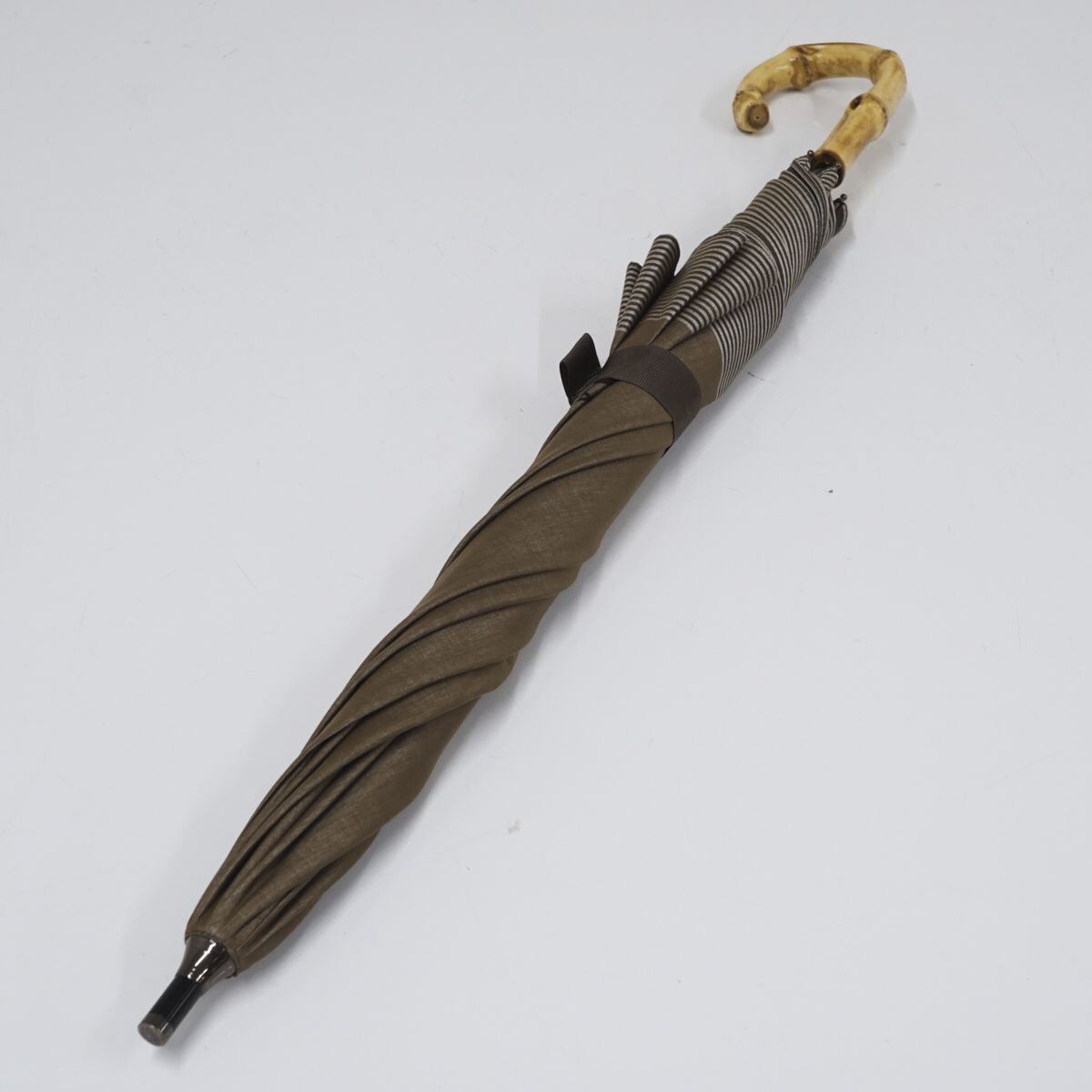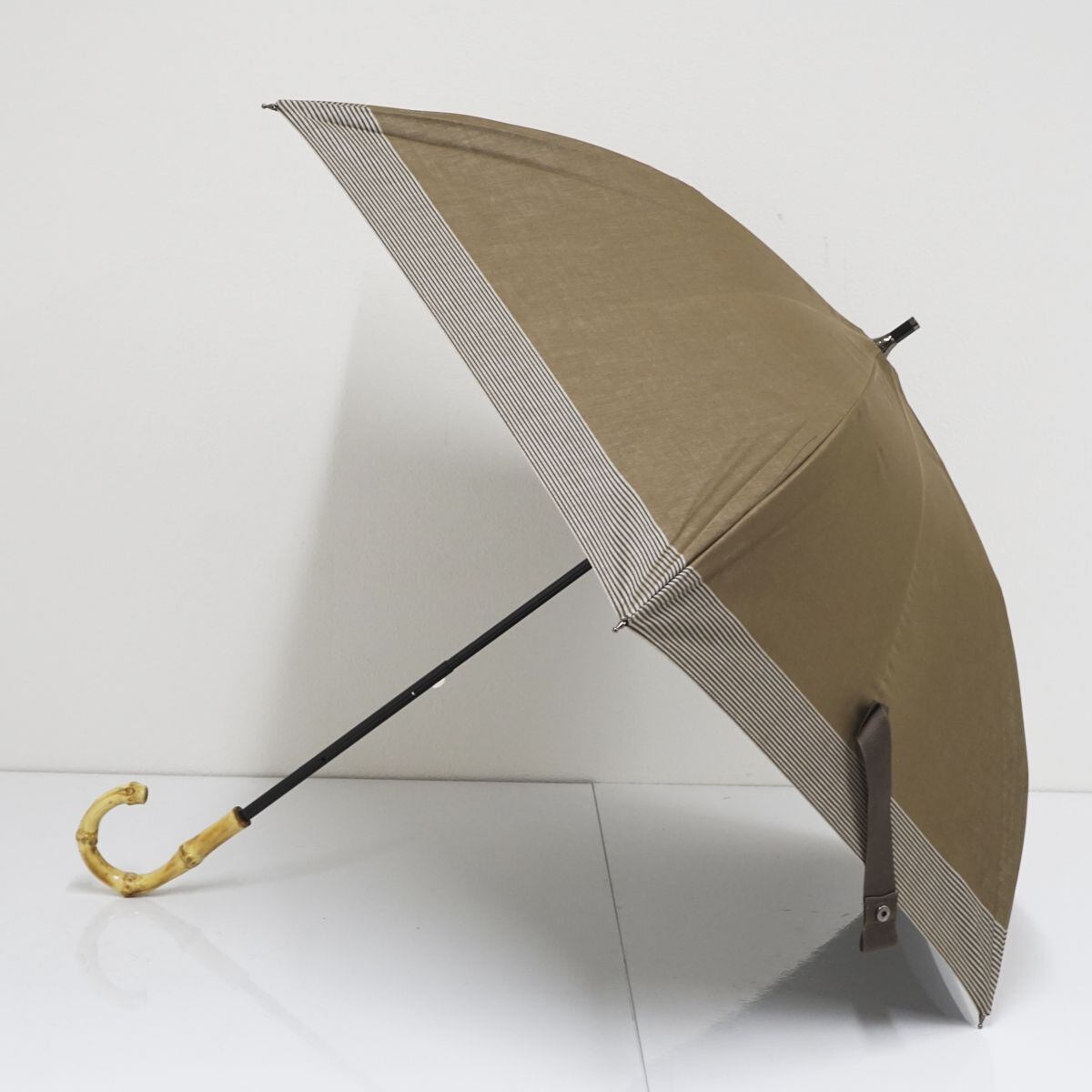 日傘 Blao ブラオ USED美品 晴雨兼用 サマーシールド カーキ ボーダー UV 遮光 50cm S1265