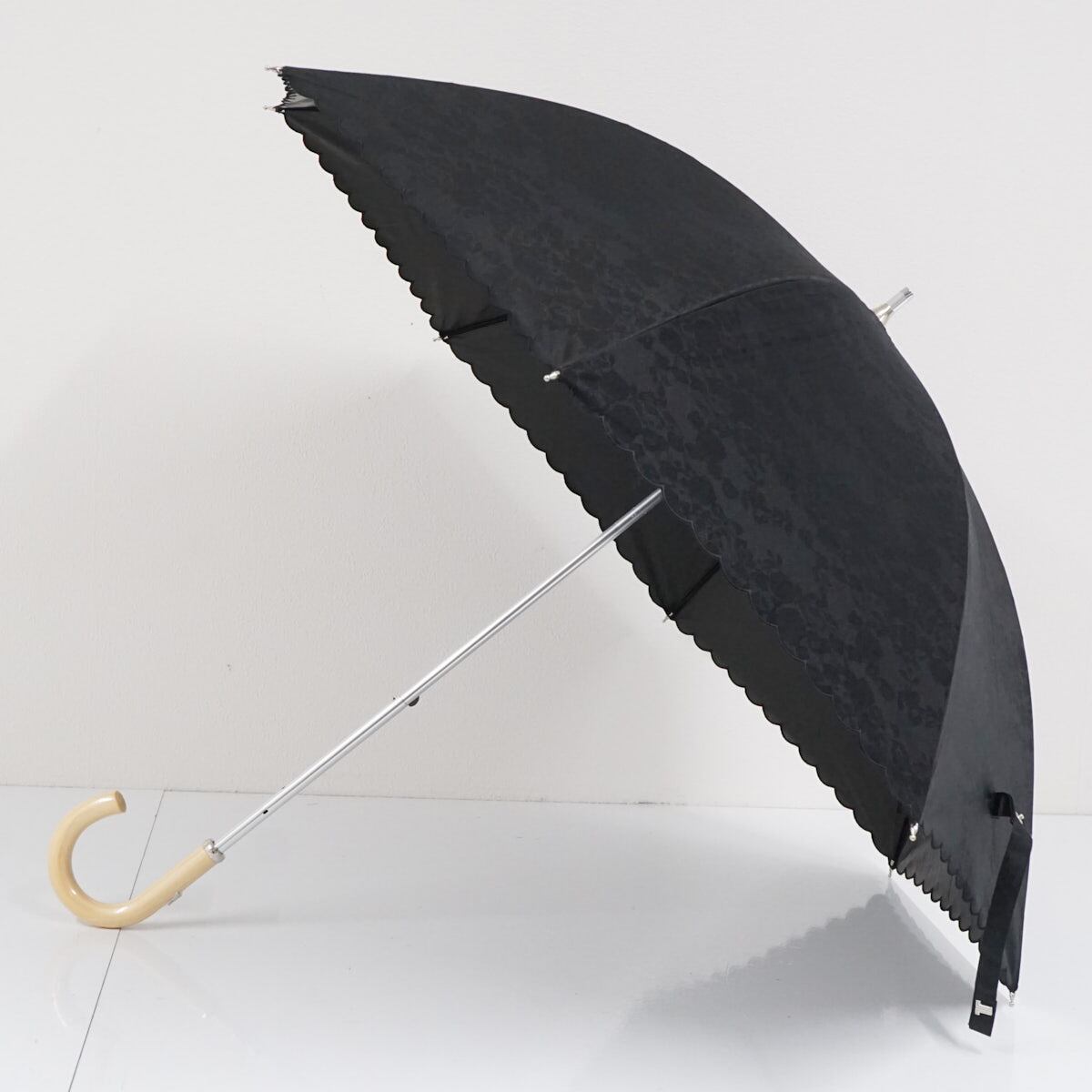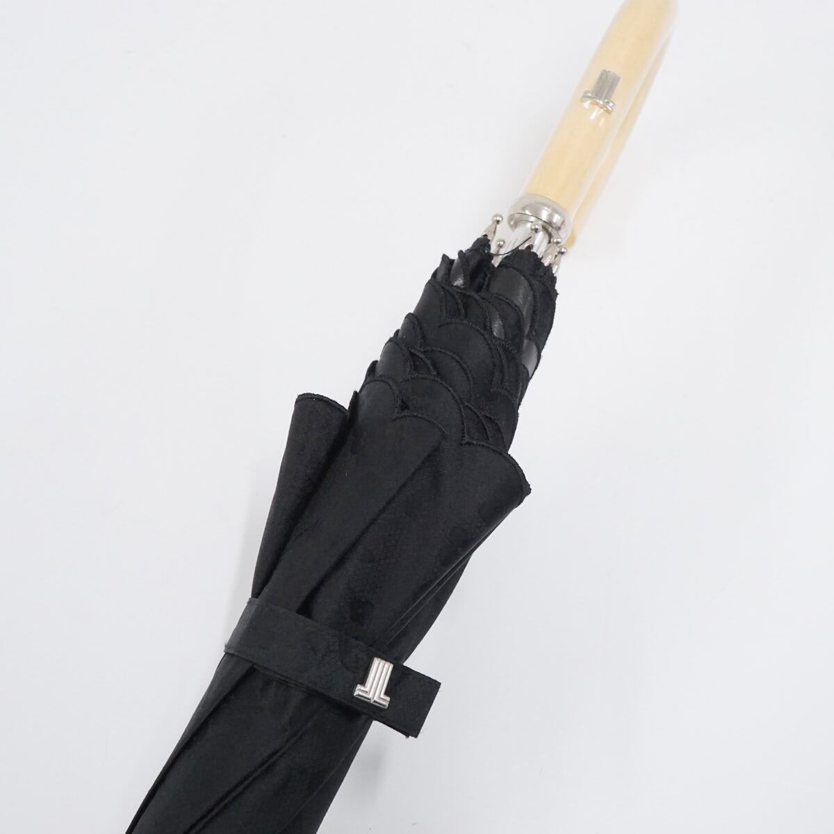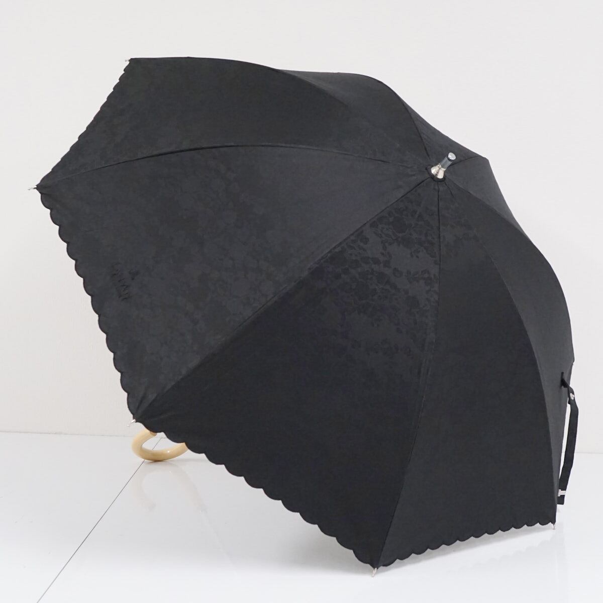 晴雨兼用日傘 LANVIN COLLECTION ランバンコレクション USED美品 レースフラワー ローズ ロゴ スカラップ刺繍 木製手元 UV 50cm A2337