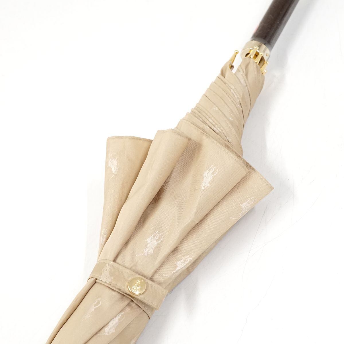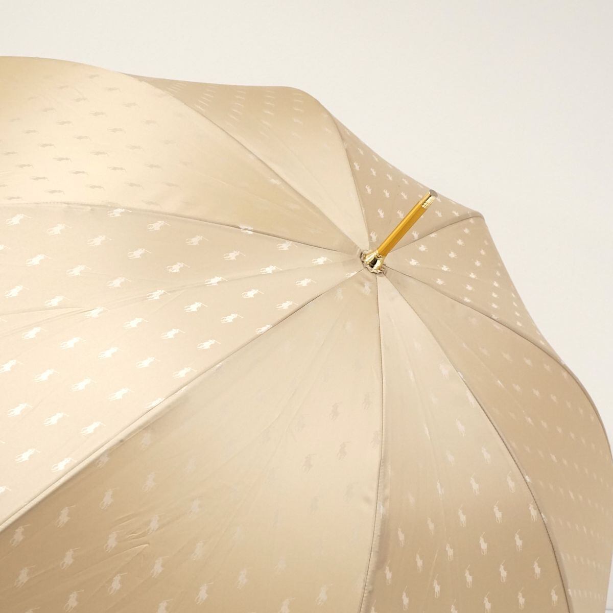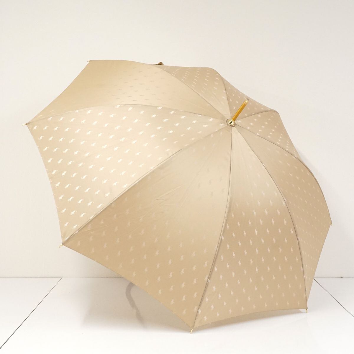 傘 POLO RALPH LAUREN ポロラルフローレン USED品 ジャガード ポロポニー ポロドット 総柄 木製手元 ベージュ 60cm S1269