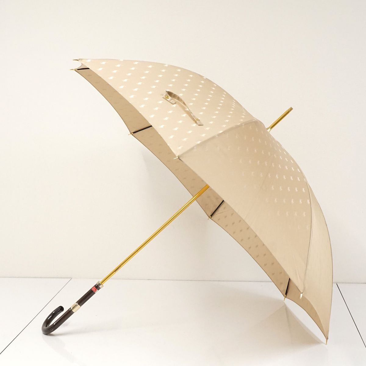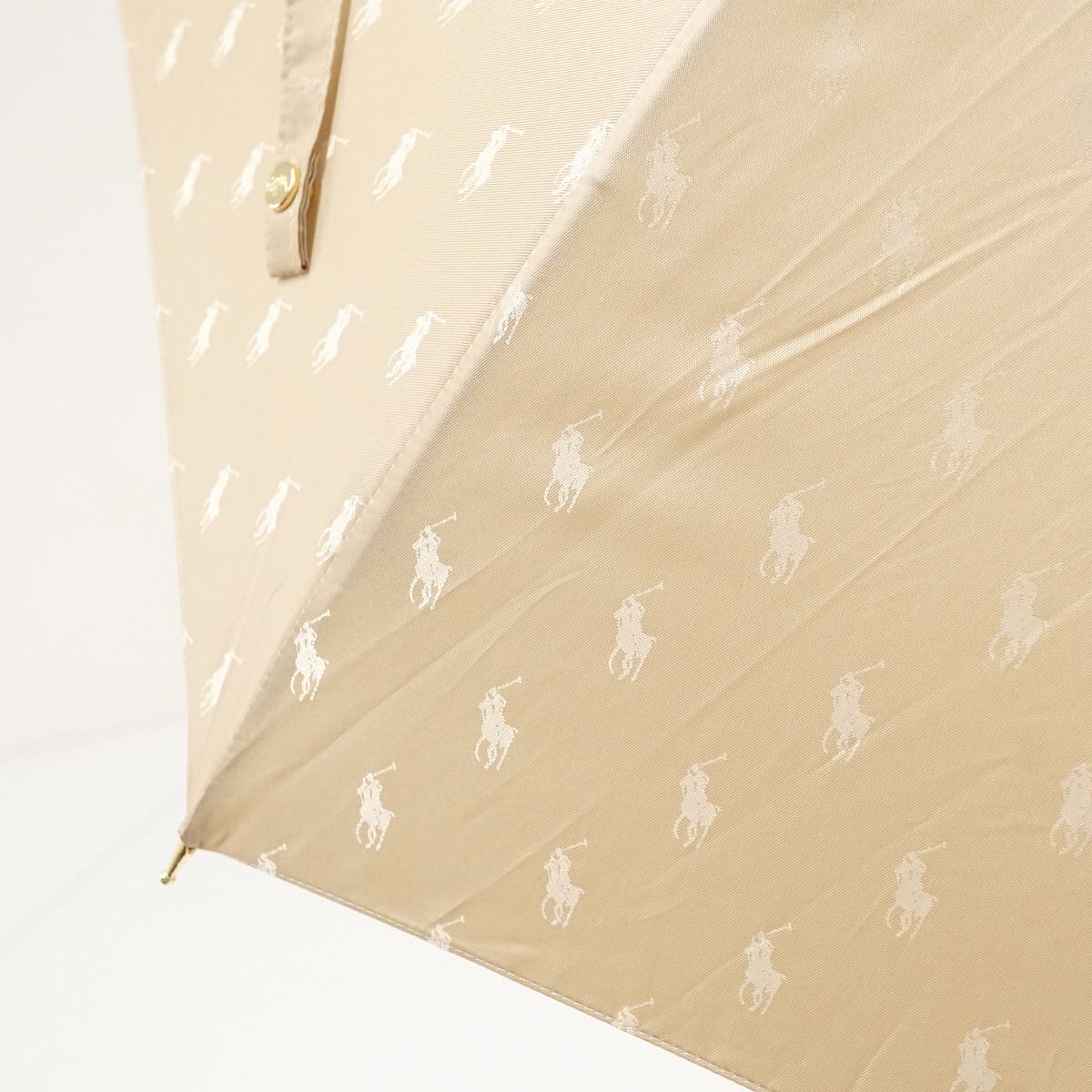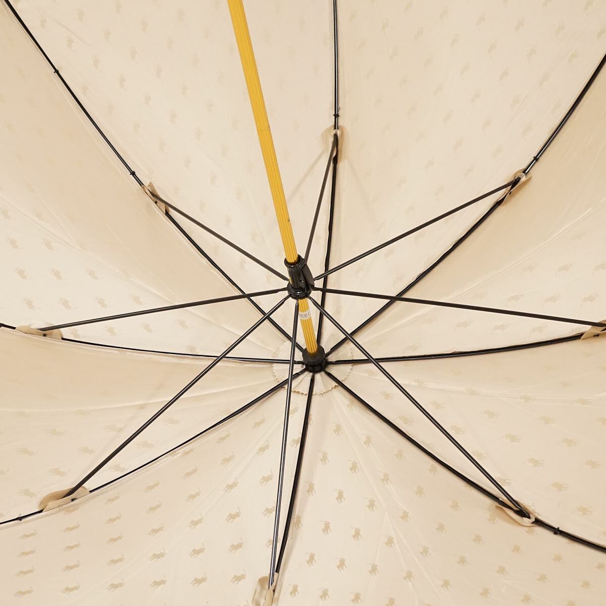 傘 POLO RALPH LAUREN ポロラルフローレン USED品 ジャガード ポロポニー ポロドット 総柄 木製手元 ベージュ 60cm S1269