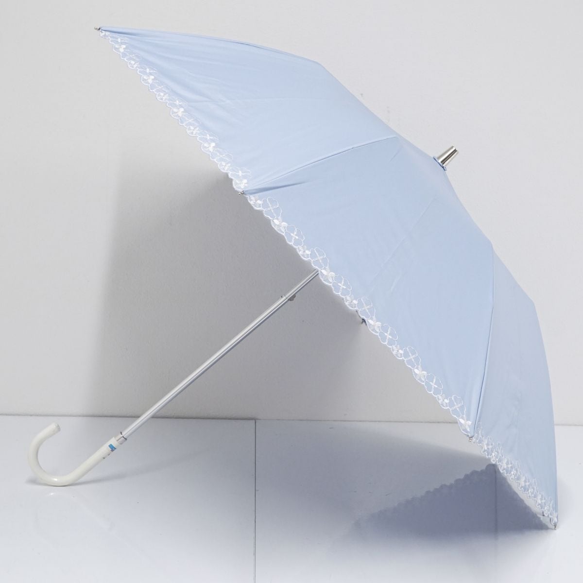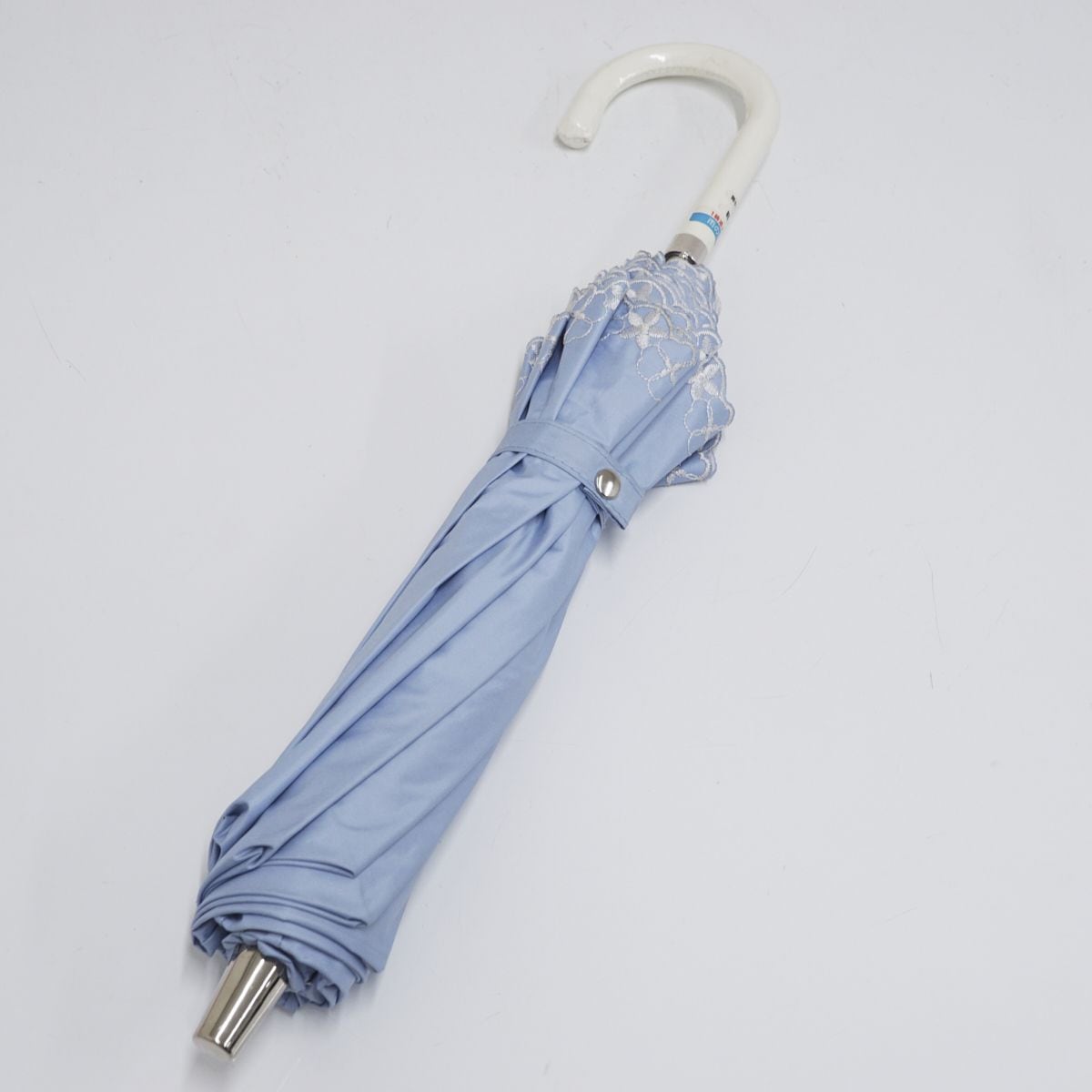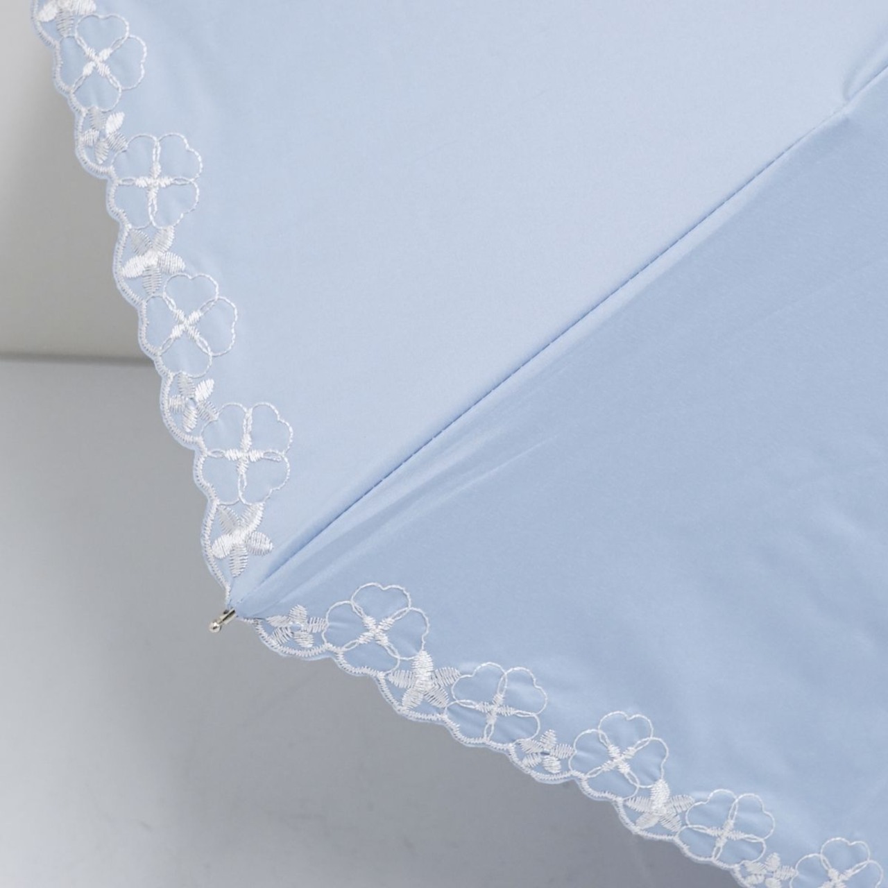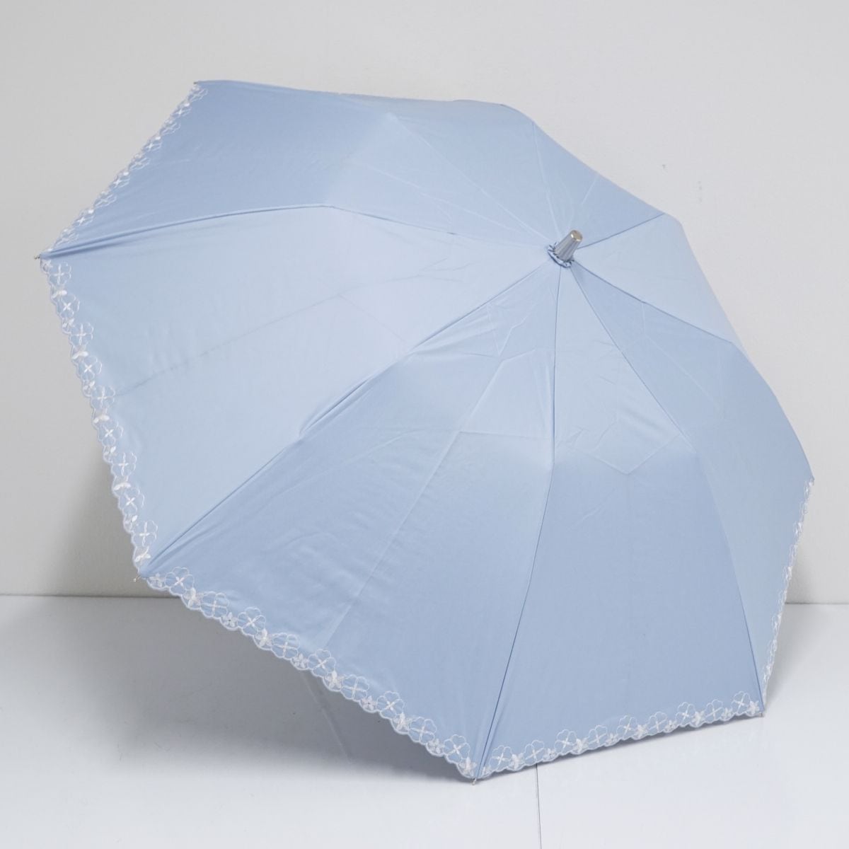 折りたたみ日傘 MOONBAT ムーンバット USED美品 一級遮光 折日傘 レディース 遮熱 晴雨兼用 水色 刺繍 花柄 UV 紫外線対策 50cm FA8580