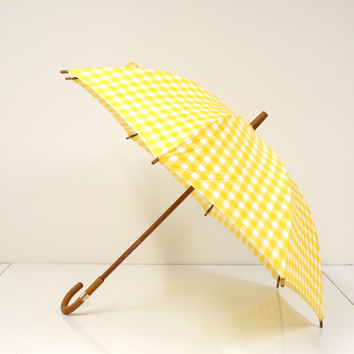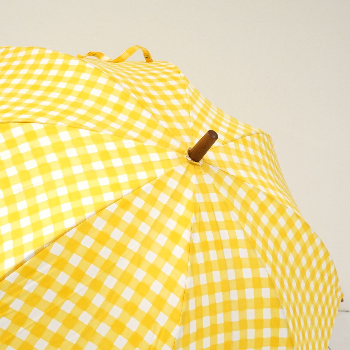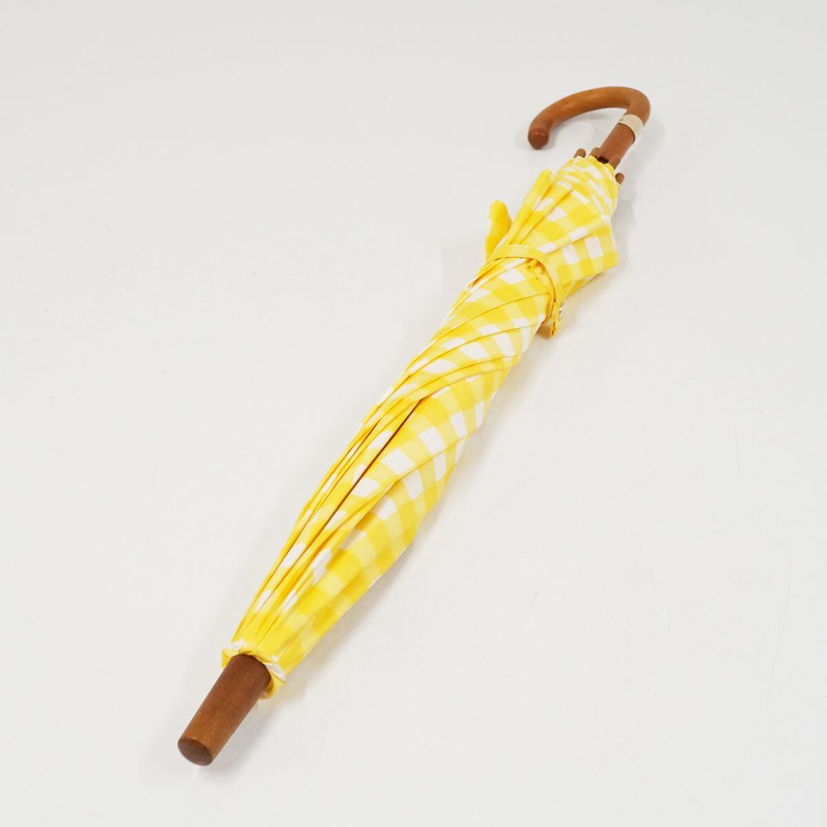 晴雨兼用日傘 UNITED ARROWS USED品 ギンガムチェック シャンブレー イエロー 木製手元 ユナイテッドアローズ 47cm S1270