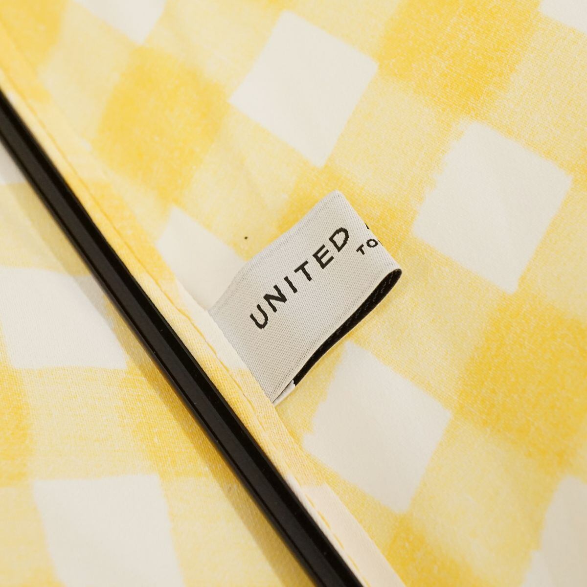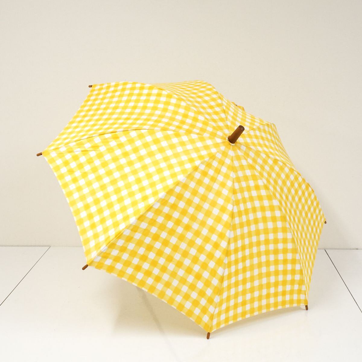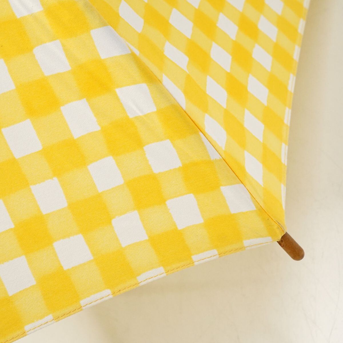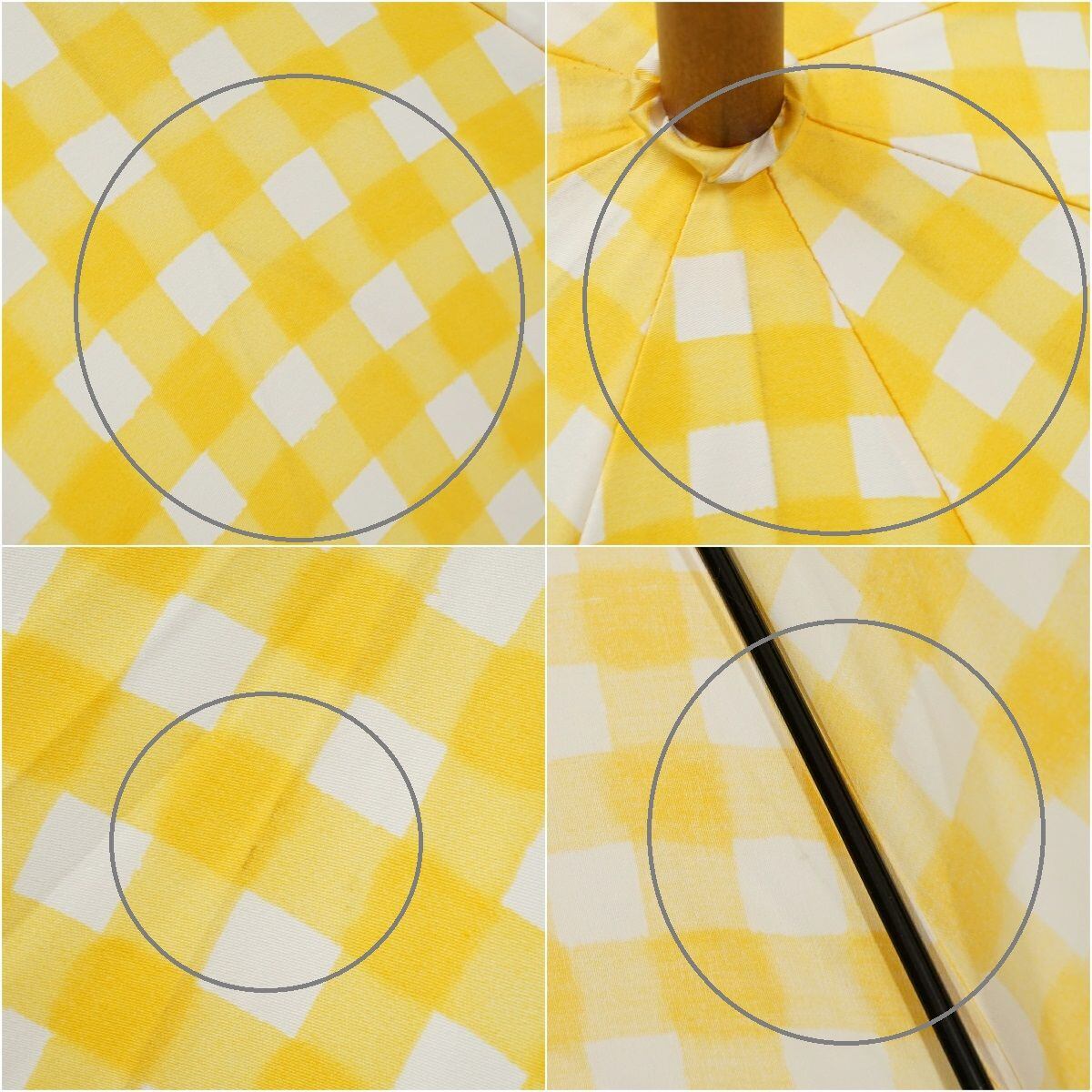 晴雨兼用日傘 UNITED ARROWS USED品 ギンガムチェック シャンブレー イエロー 木製手元 ユナイテッドアローズ 47cm S1270