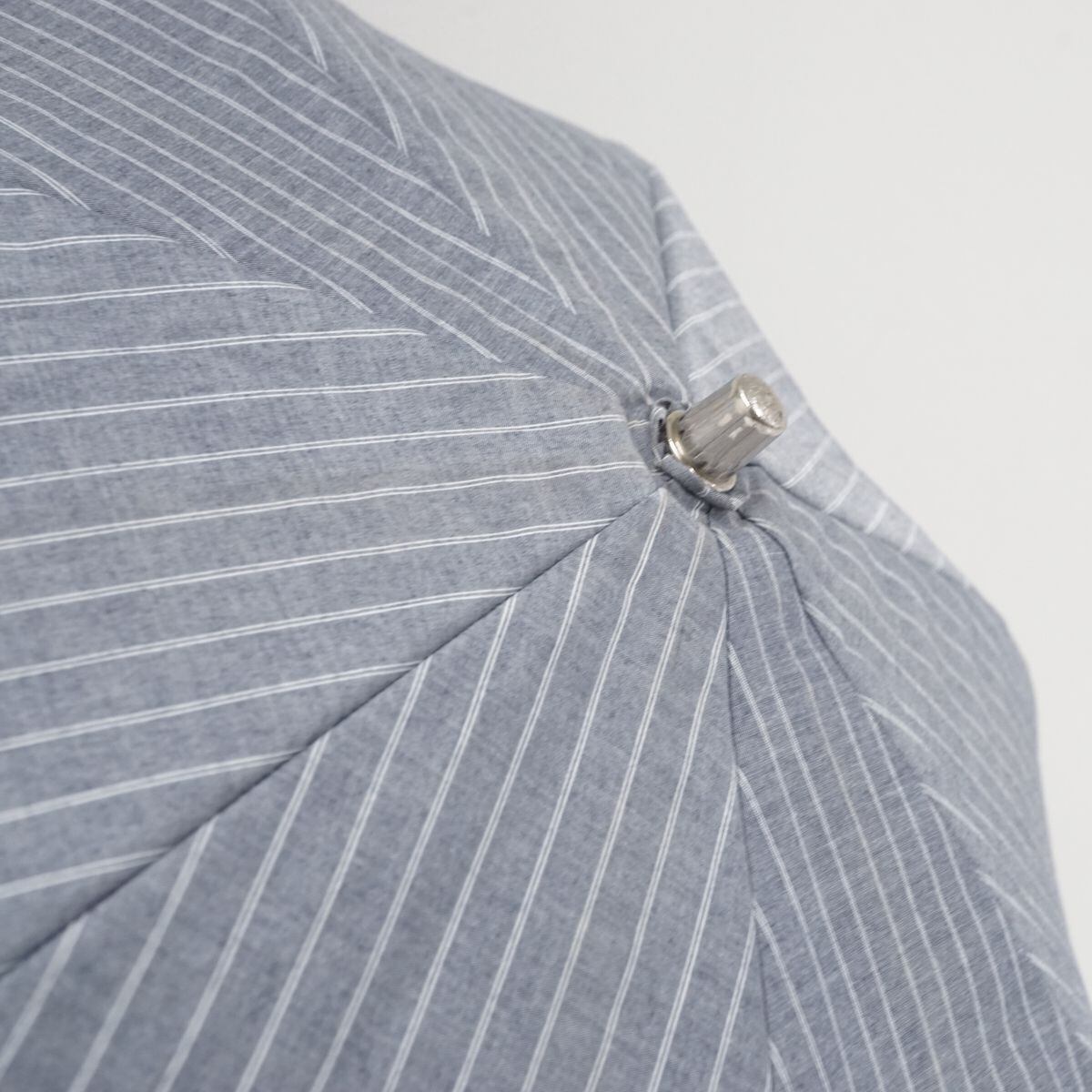 デニムライクなライトグレーの生地にホワイトのストライプをプリントし