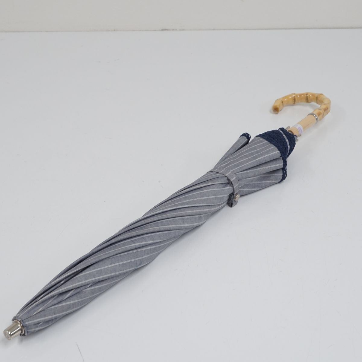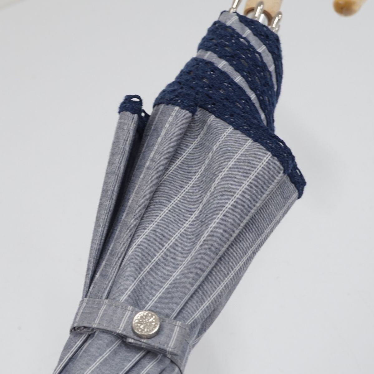 日傘 晴雨兼用 Blao ブラオ USED美品 シャンブレー ブルー 東レサマーシールドNt ピコレース フラワー刺繍 グラス遮光 遮熱 UV 50cm S1263