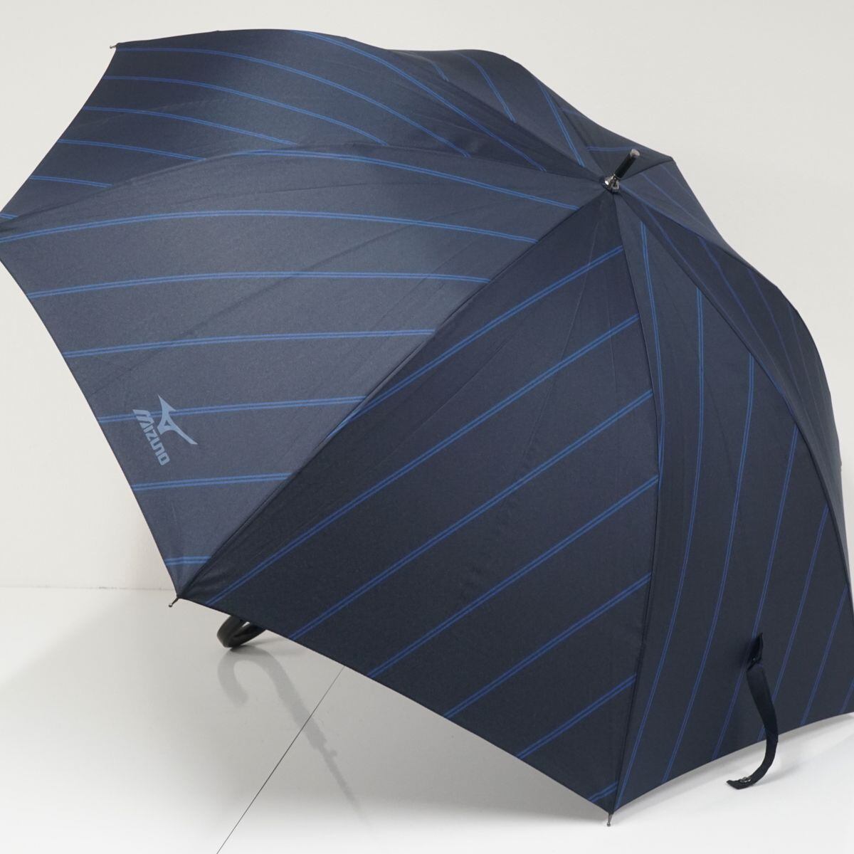 傘 MIZUNO ミズノ USED美品 メンズ 斜めストライプ ネイビー グラス骨 超大判 70cm A1279