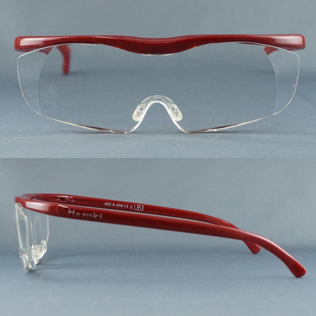 Hazuki ハズキルーペ 拡大鏡 USED美品 1.85倍 日本製 ラージ クリアレンズ レッド UV 重ねがけ X8757