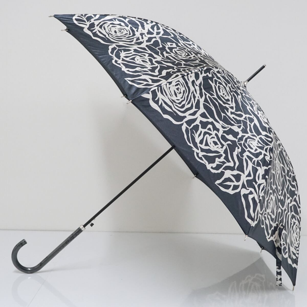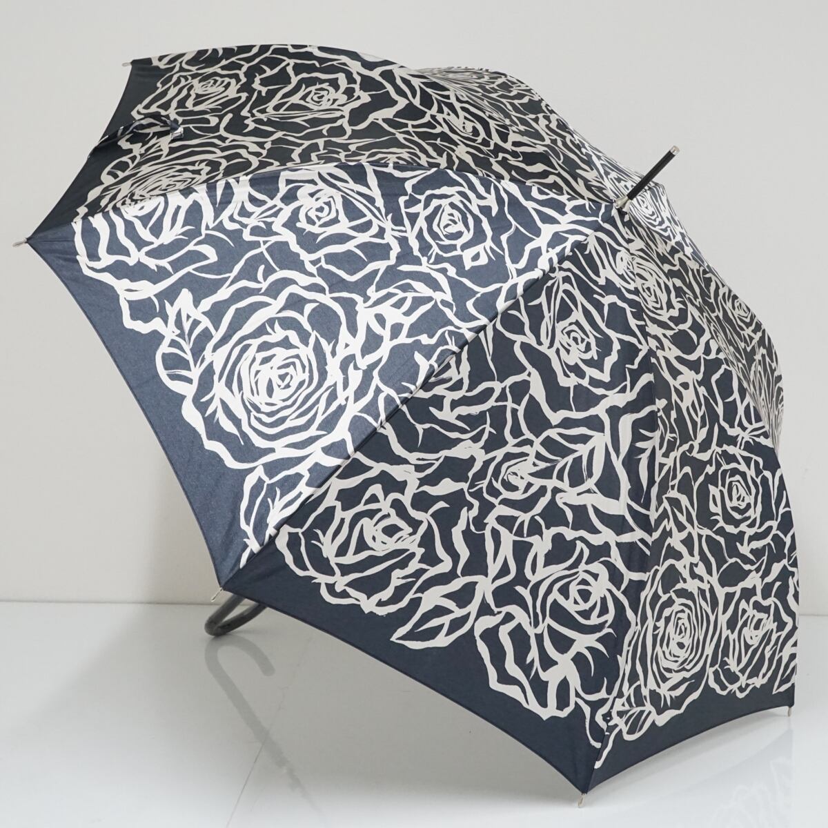 傘 mila schon ミラショーン USED超美品 デフォルメローズ エレガント ネイビー ジャンプ 58cm A1811