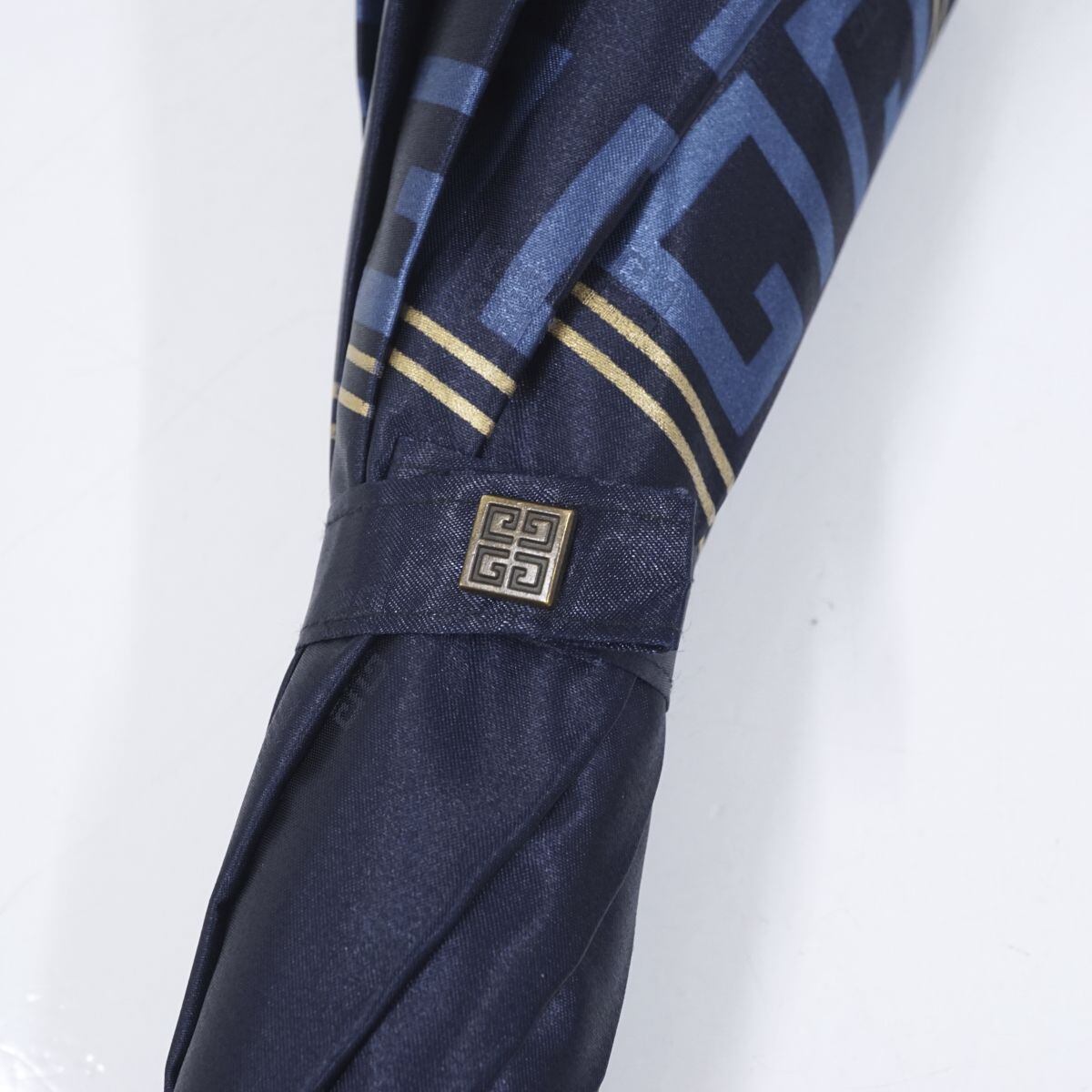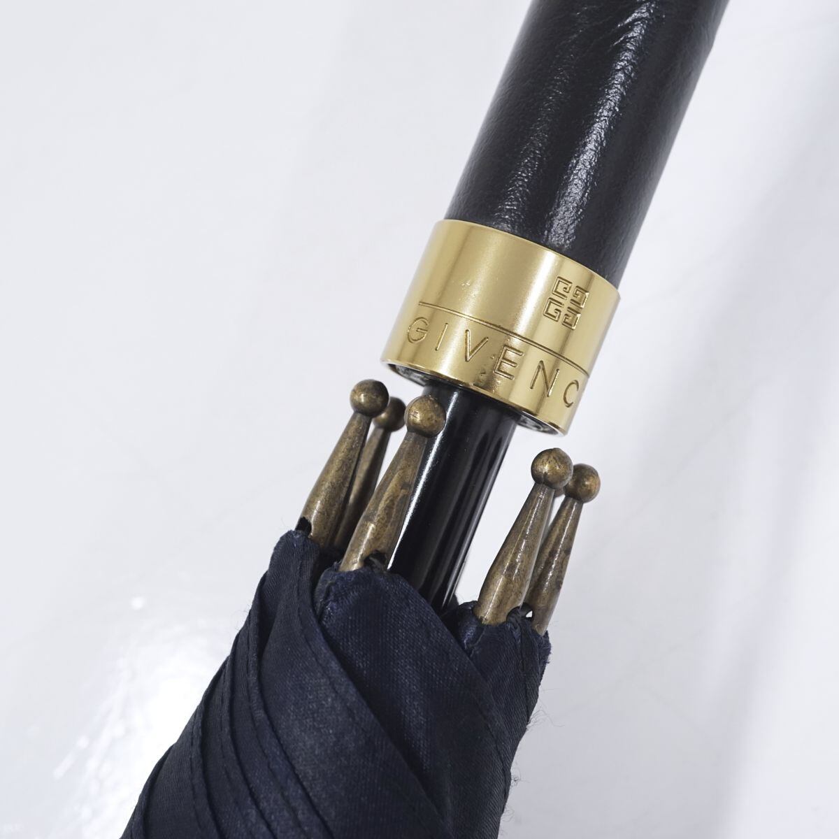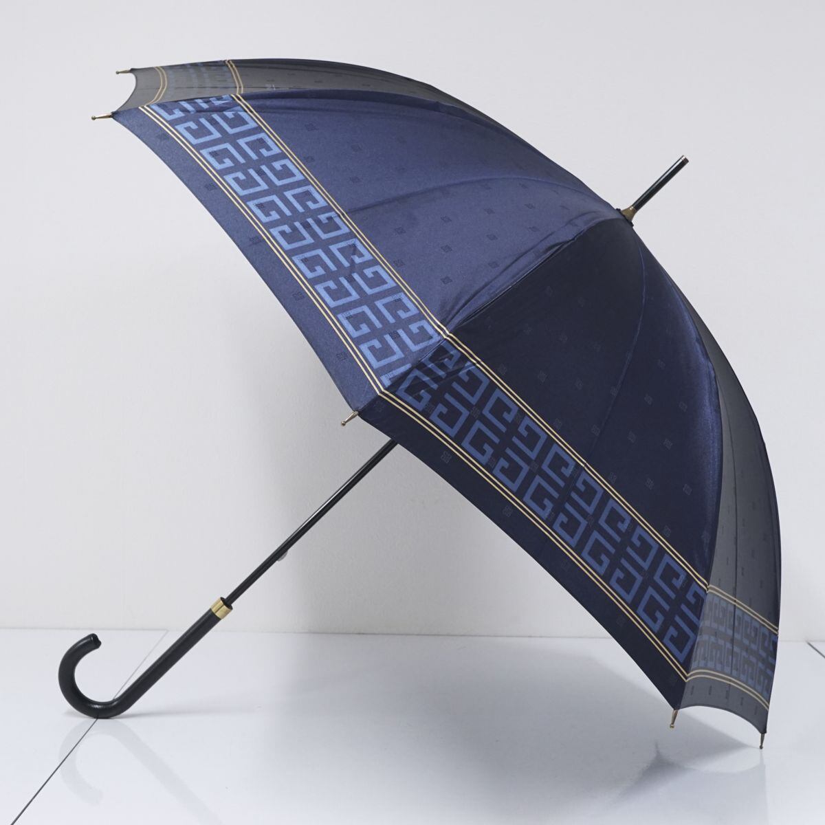 高級傘 GIVENCHY ジバンシイ USED美品 ロゴ ネイビー ジャガード ロゴ グラス骨 60cm S1280