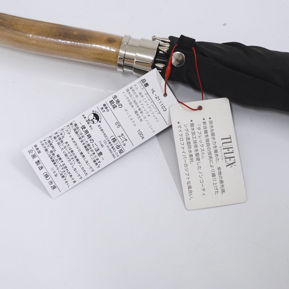 【新品未使用】傘 ICHIHARA 市原 ラムダ ブラック 強力撥水 レインバリア タフレックス メンズ 収納袋付き 65cm S1292