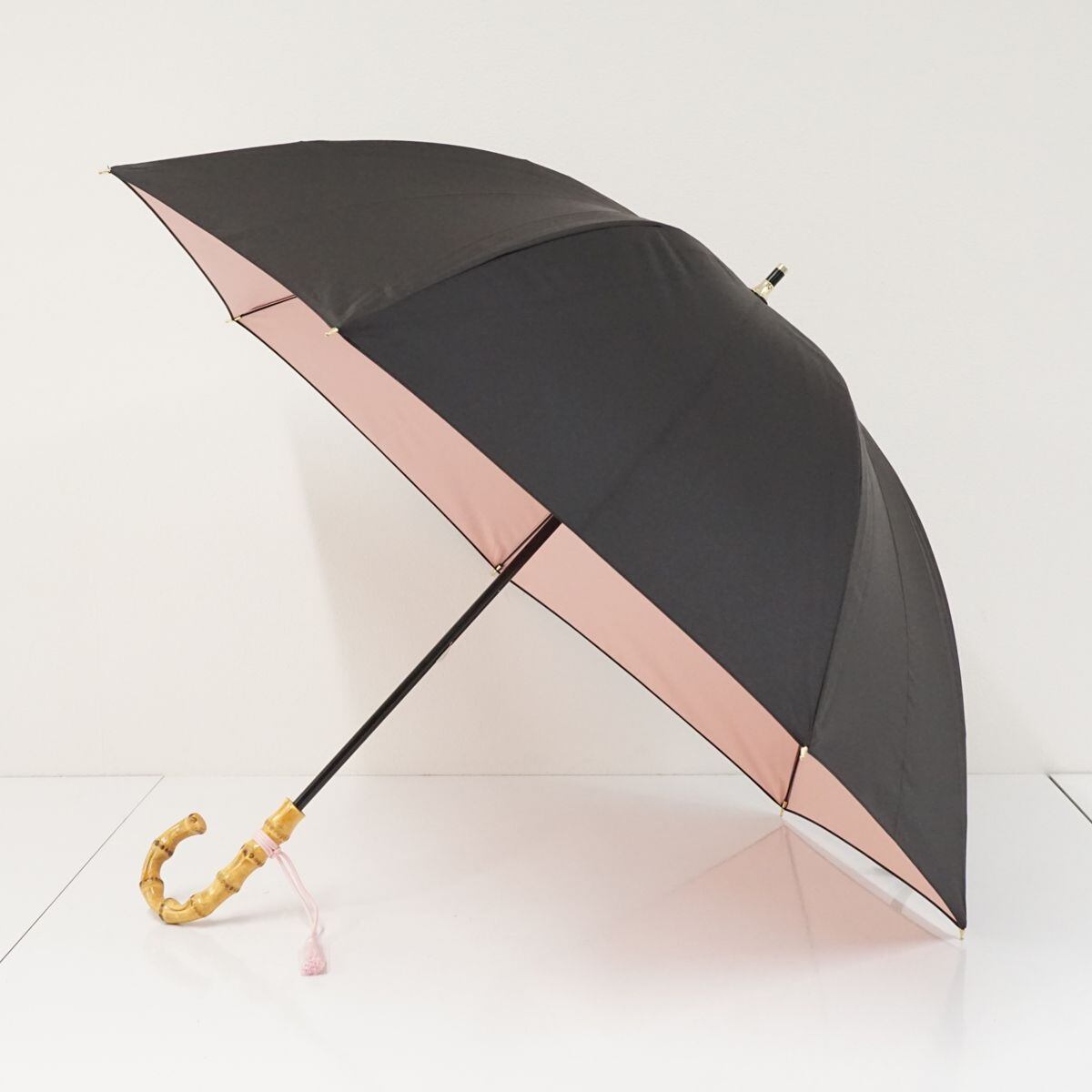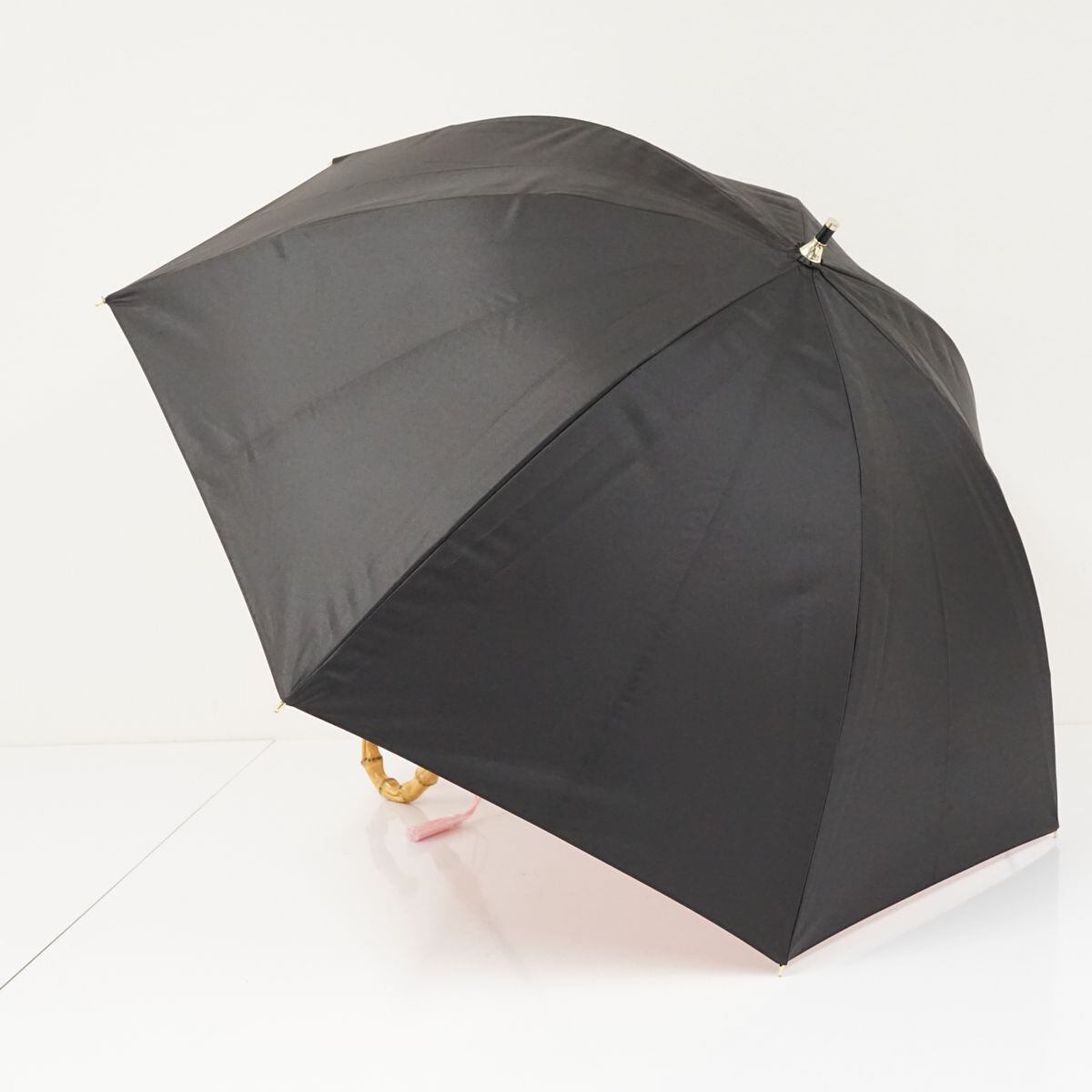 晴雨兼用 日傘 大判 ブラック ×ピンク 遮光 遮熱 UV 寒竹手元 55cm BT1206