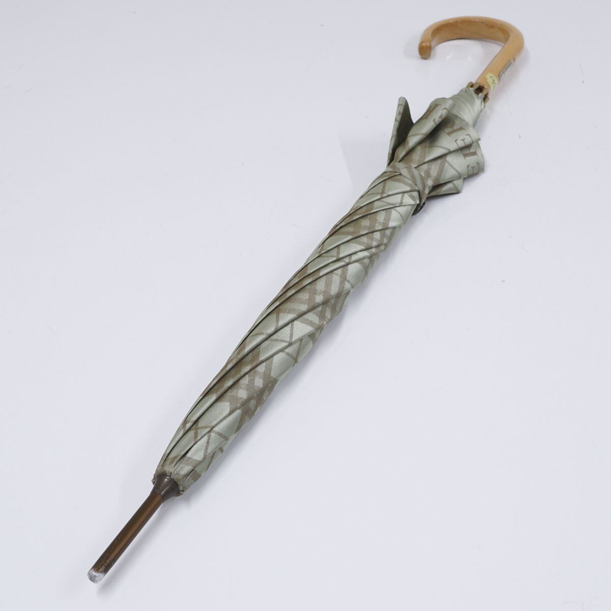 傘 BURBERRY バーバリー USED美品 チェック ロゴ グリーン ジャガード 高級 ブランド 軽量 60cm S1296