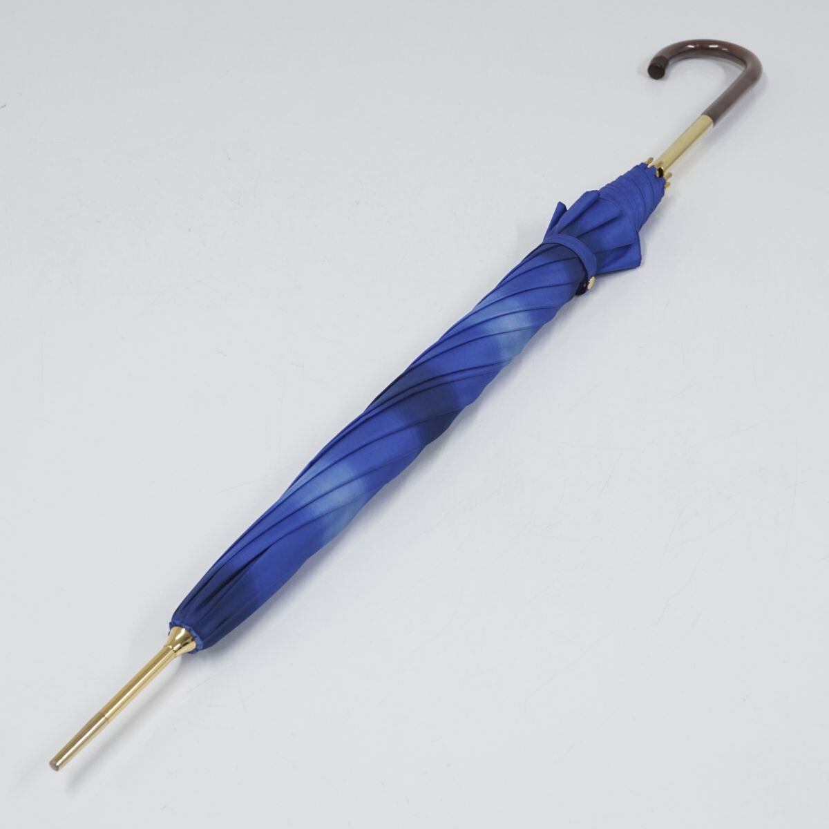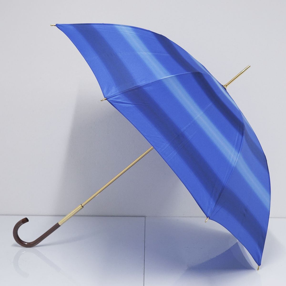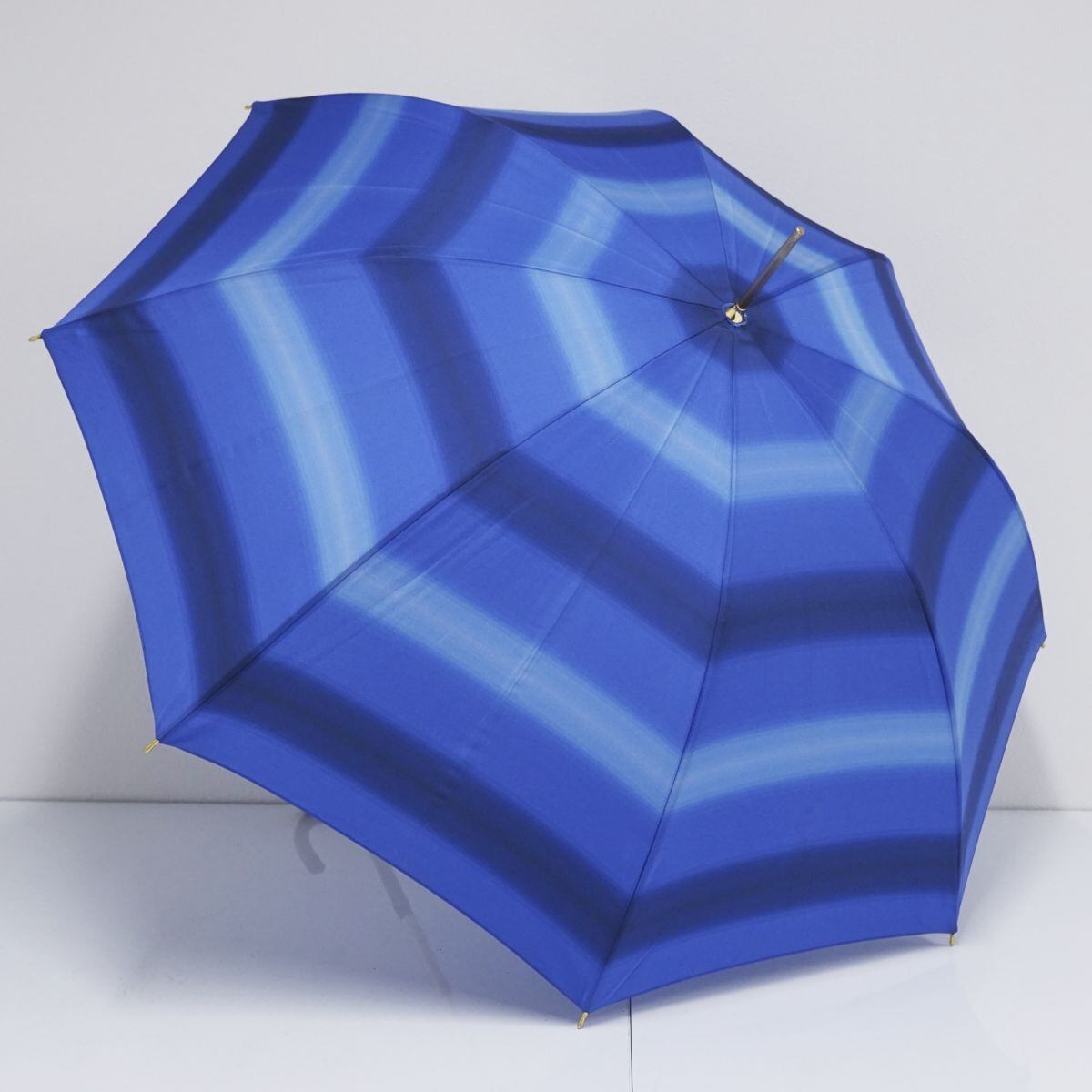 傘 Paul Stuart ポールスチュアート USED美品 レディース ブルー グラデーション グラス骨 ボーダー 55cm A1303