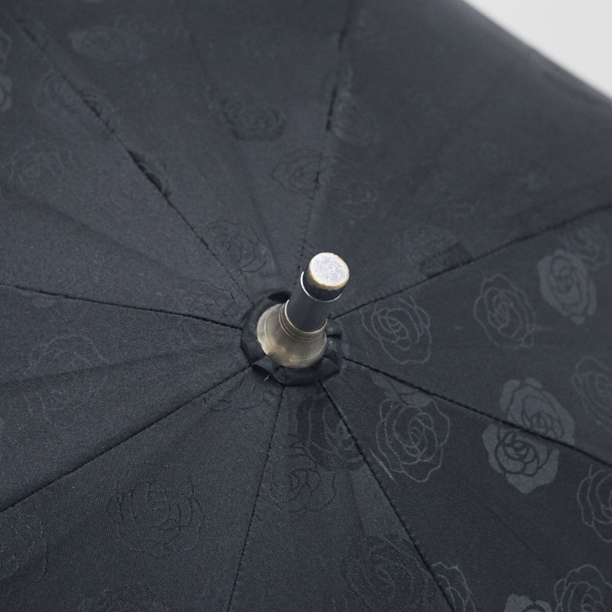 ローズの模様がふんわりと浮かび上がるエレガントなデザインの日傘です。