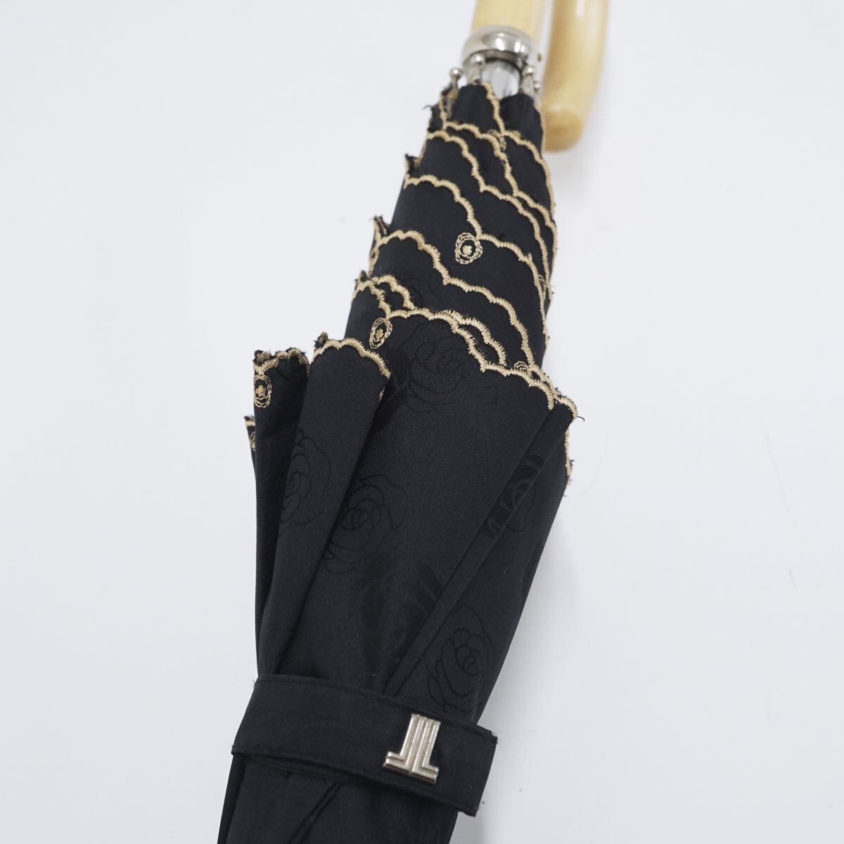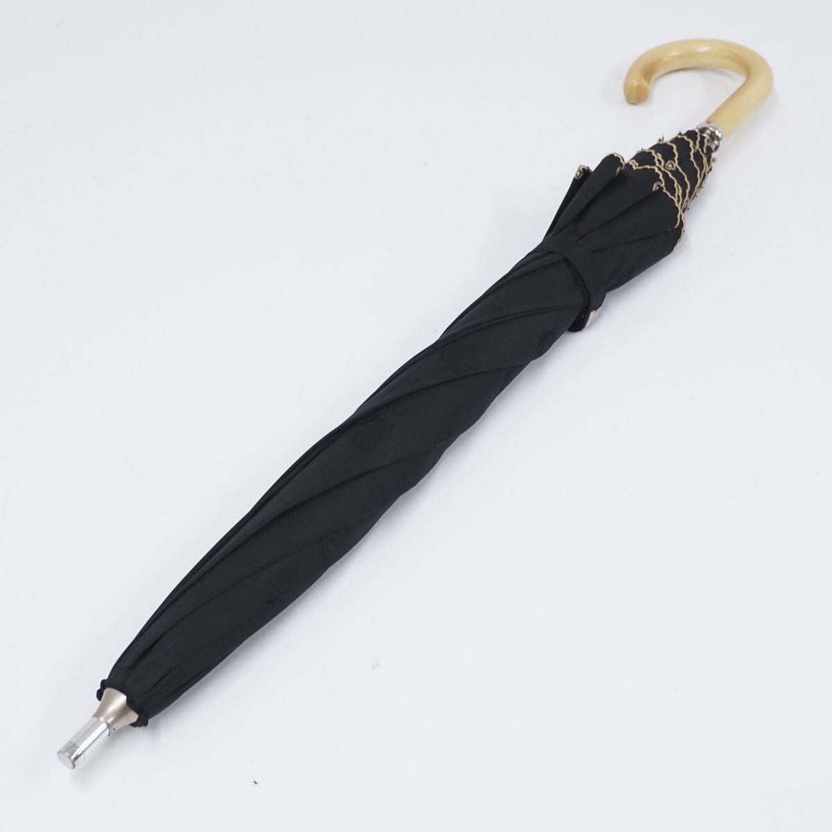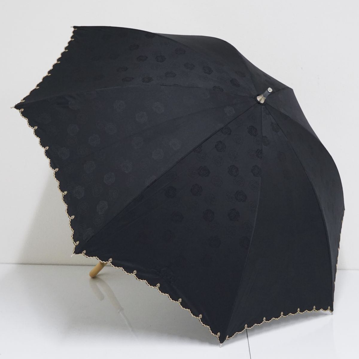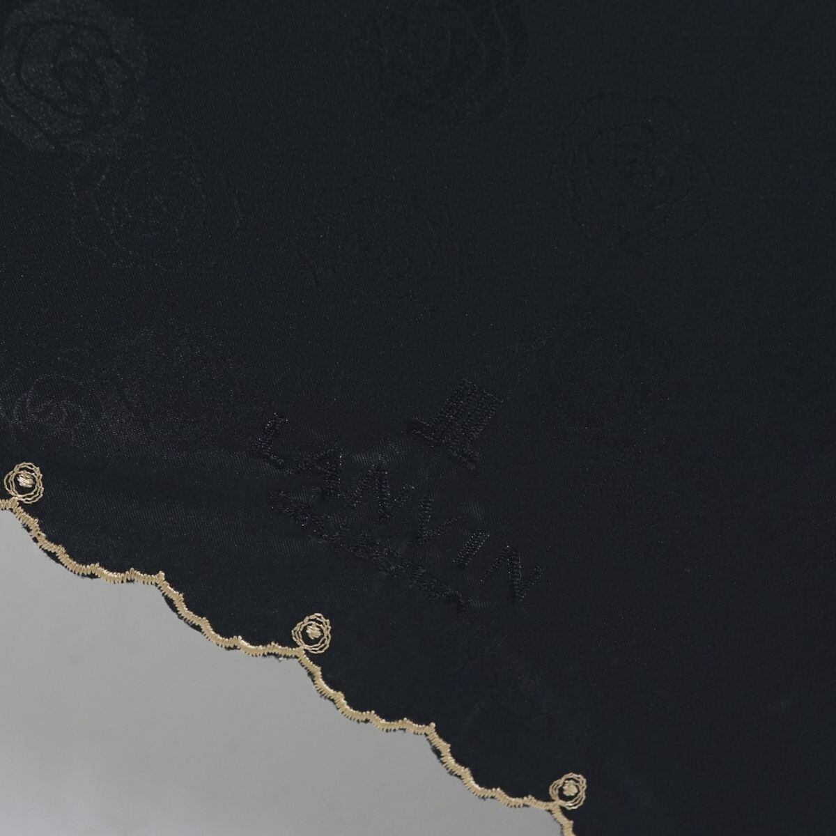 日傘 LANVIN COLLECTION ランバンコレクション USED美品 晴雨兼用 ローズ スカラップ刺繍 ブラック UV 50cm A1295
