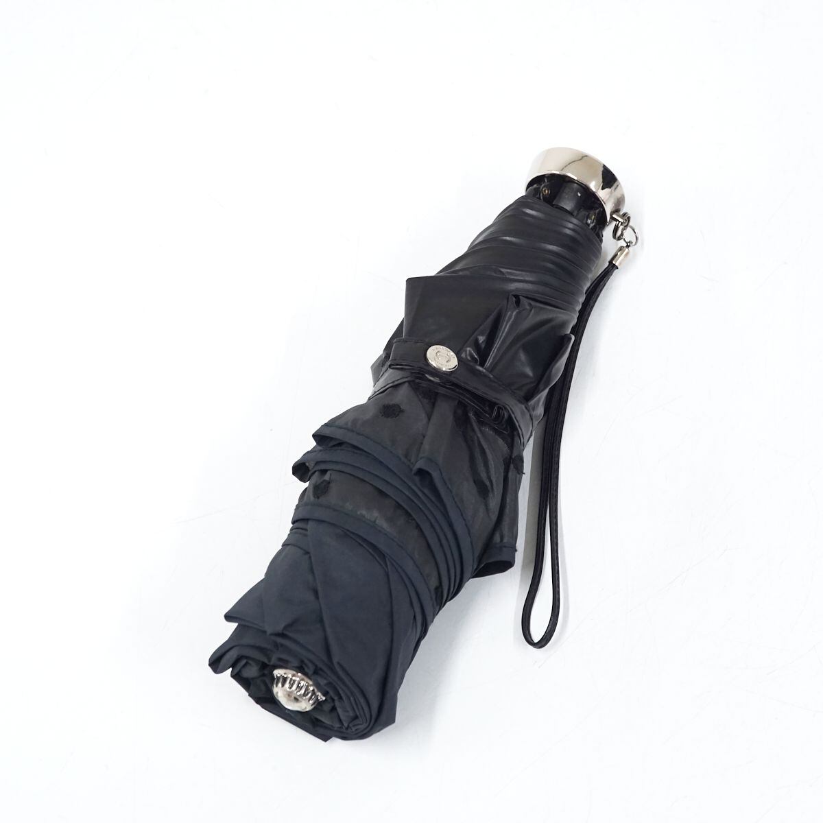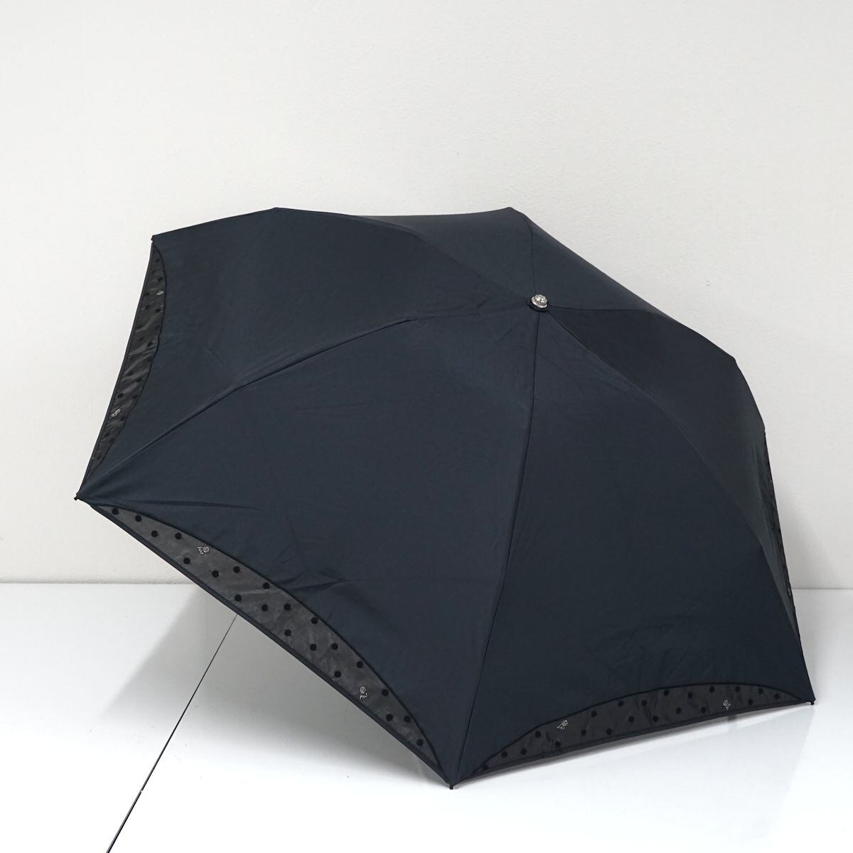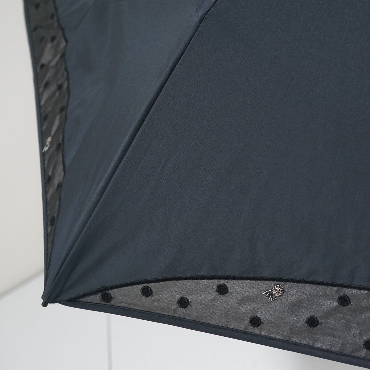 折りたたみ日傘 HANWAY ハンウェイ USED品 晴雨兼用 オーガンジー ドット シンプル ブラック UV 50cm FA8602