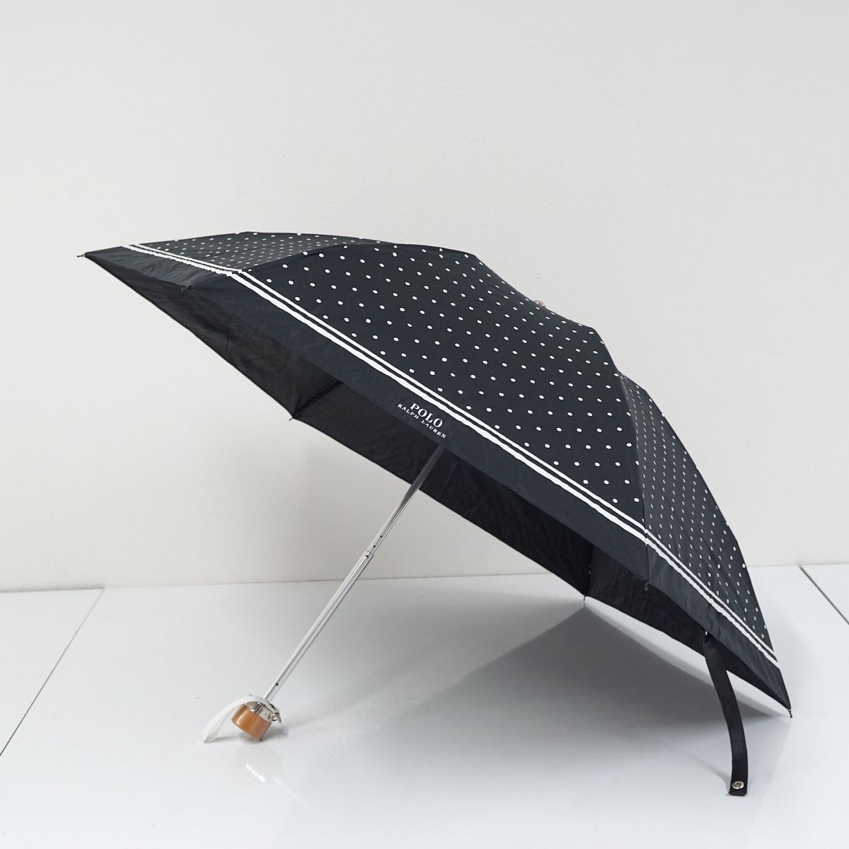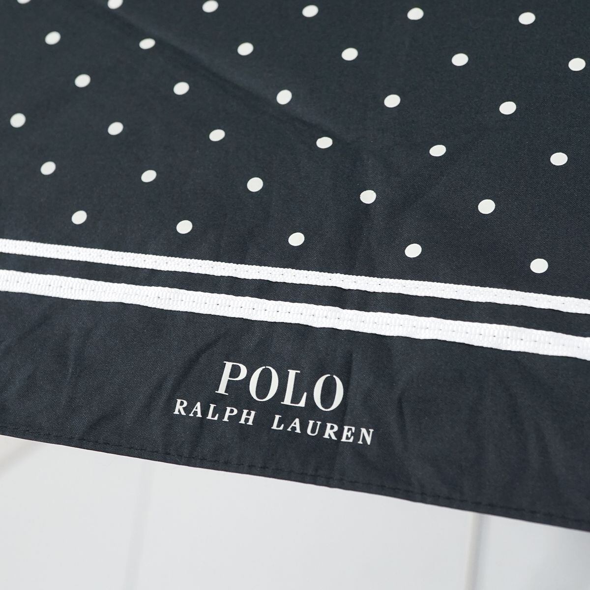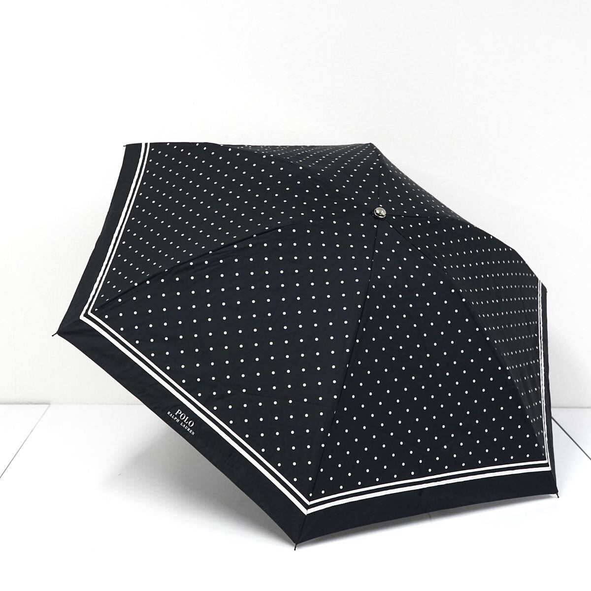 折りたたみ日傘 POLO RALPH LAUREN ポロラルフローレン USED美品 一級遮光 晴雨兼用 ブラック ドット ラインボーダー ロゴ 50cm FA8601