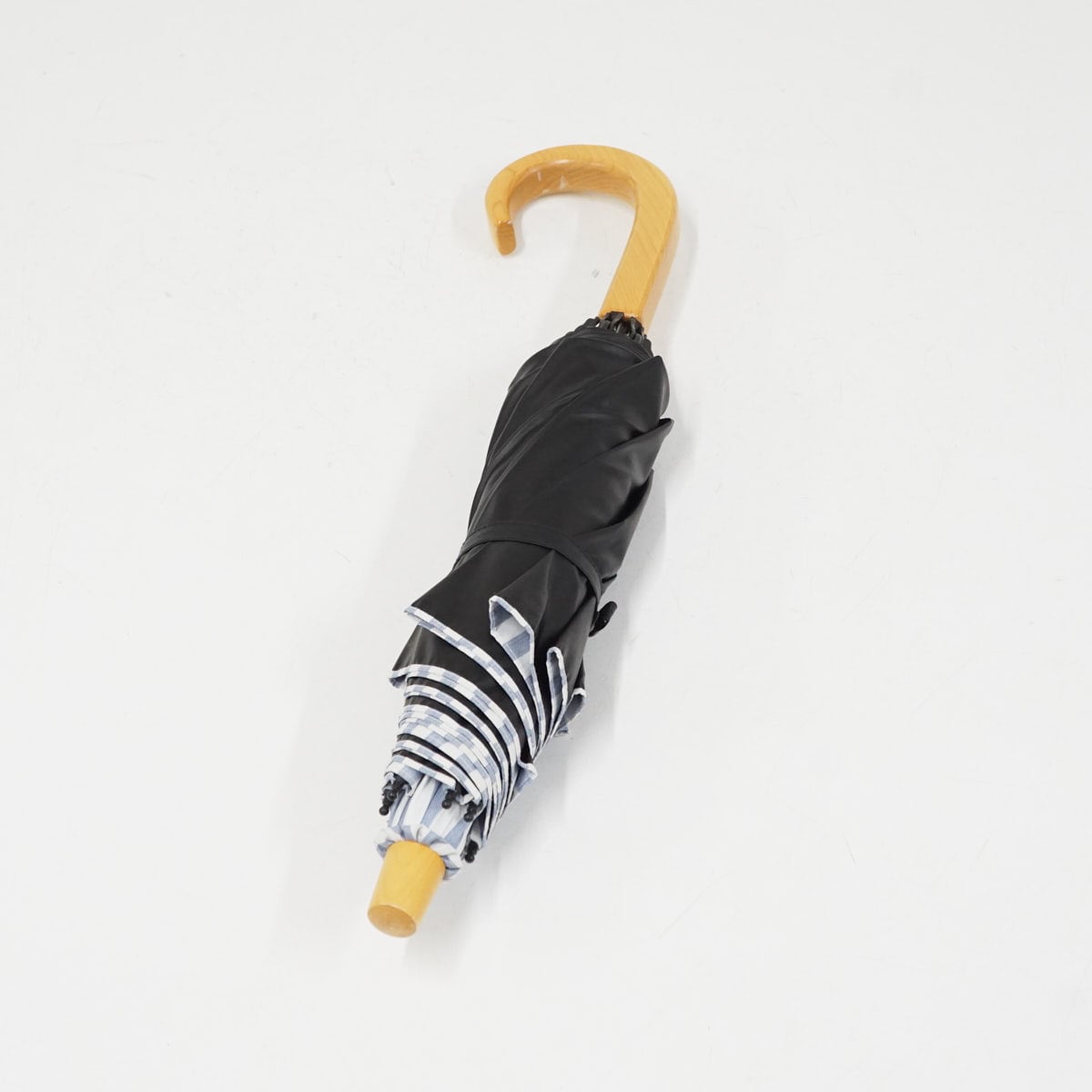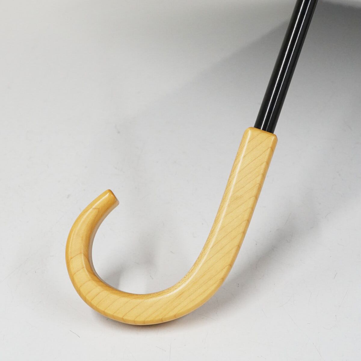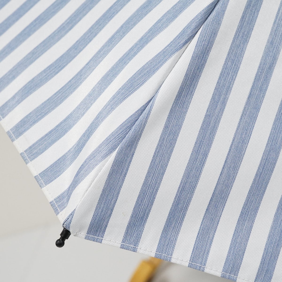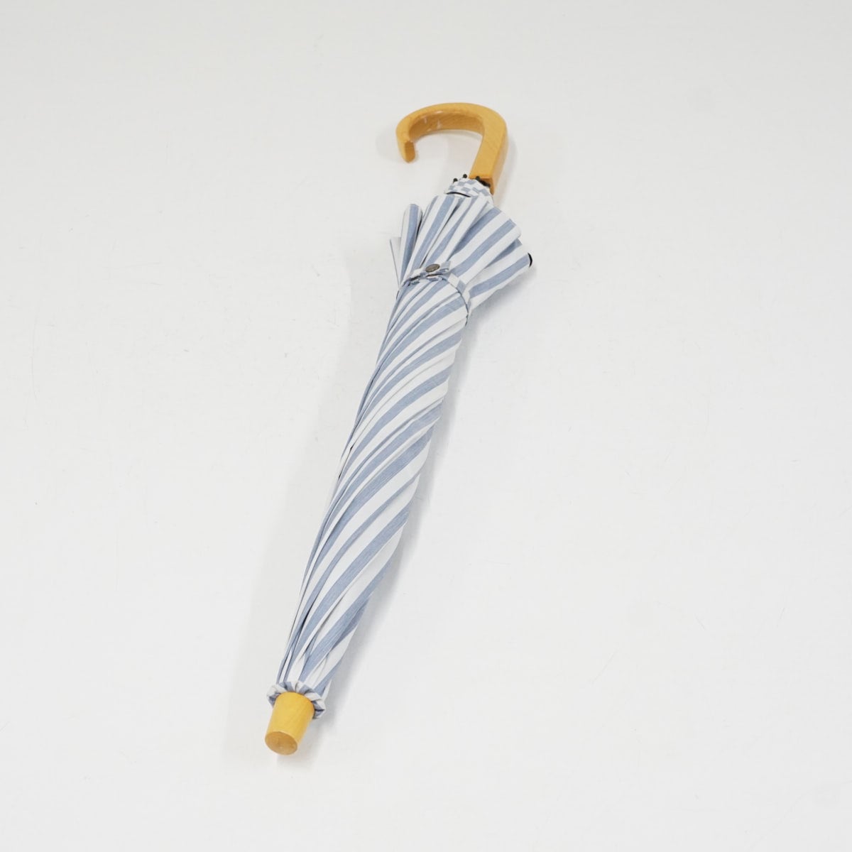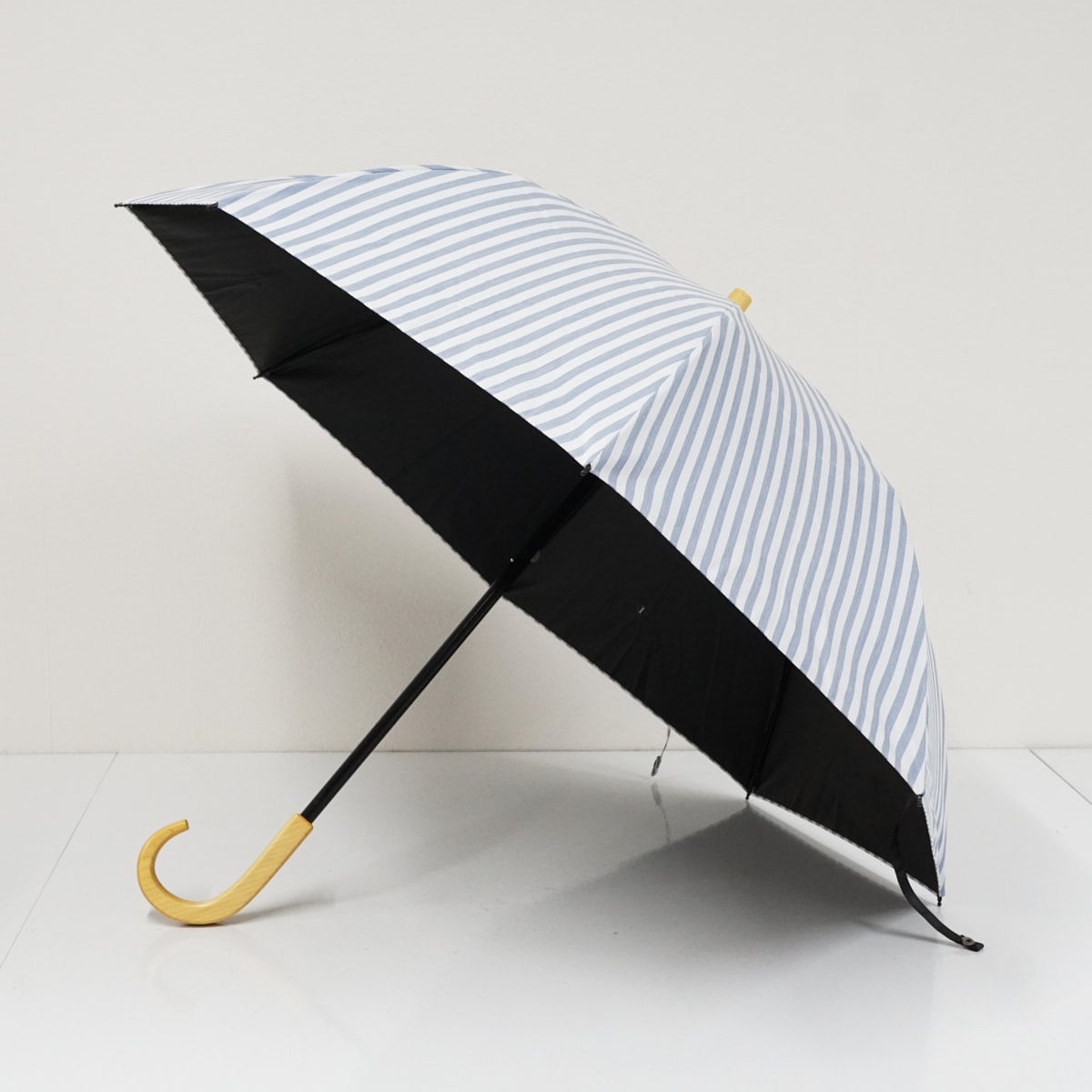 生地のデザインはブルー系の爽やかなストライプで、スクエア型のスタイリッシュな木製手元を合わせています。